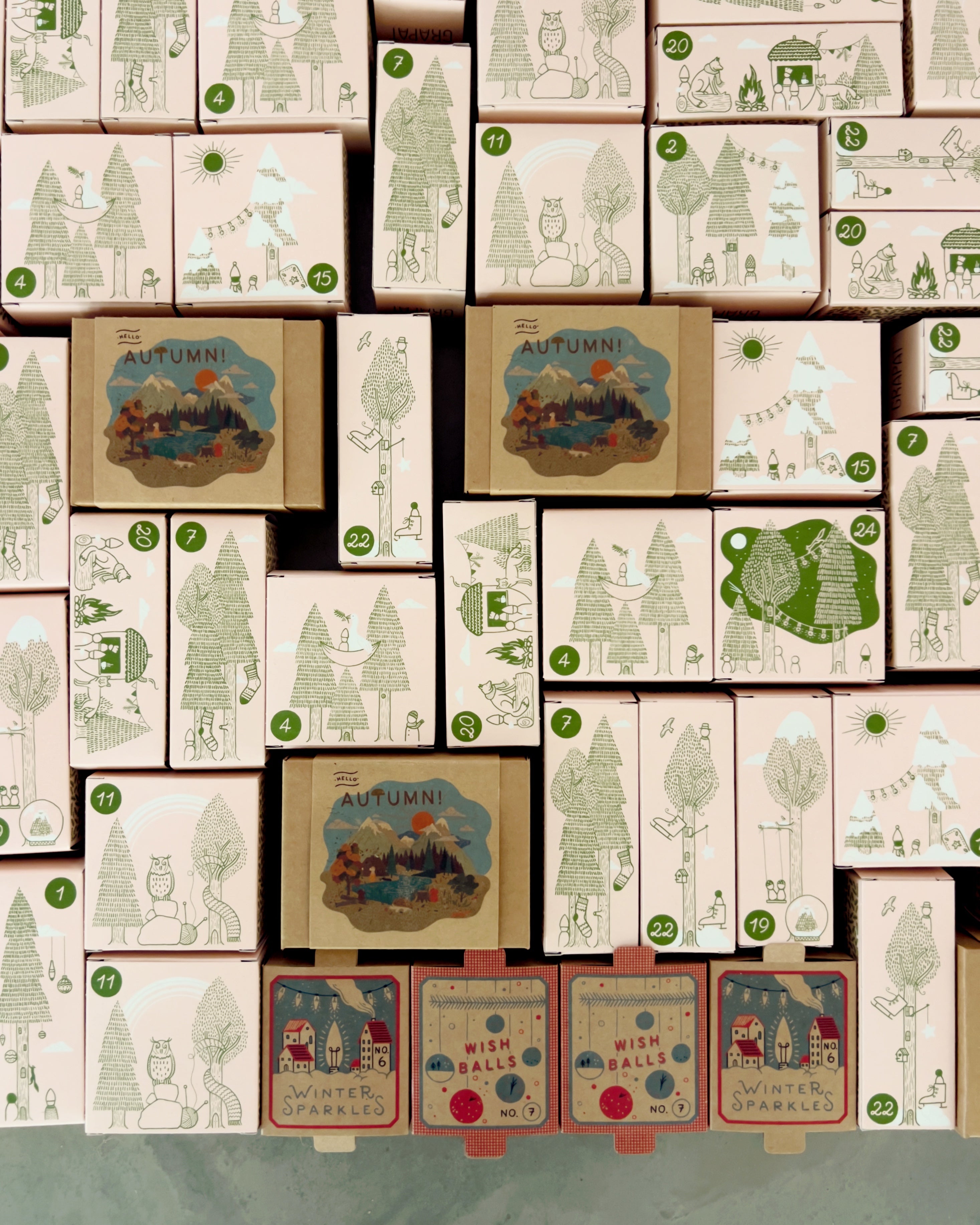 Kalenderen inneholder 24 forskjellige esker med forskjellige, limited-edition overraskelser som kobler tilbake til invitasjoner til lek og ritualer som foreslås for hver dag i adventstiden.