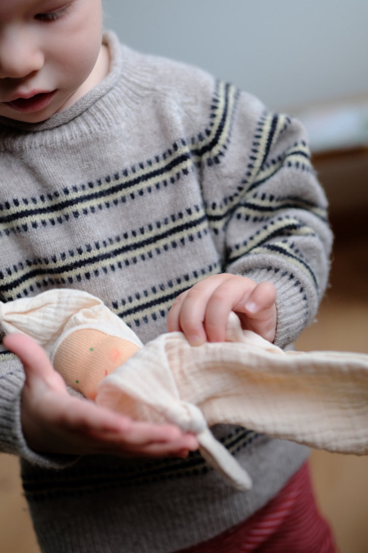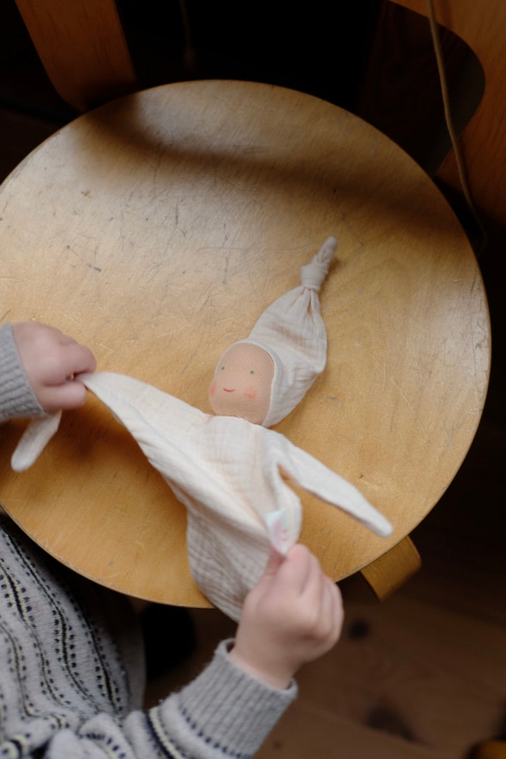 Den lille Waldorf-nissen er håndlaget med kjærlighet og omtanke – en myk trøster og første venn for de aller minste.