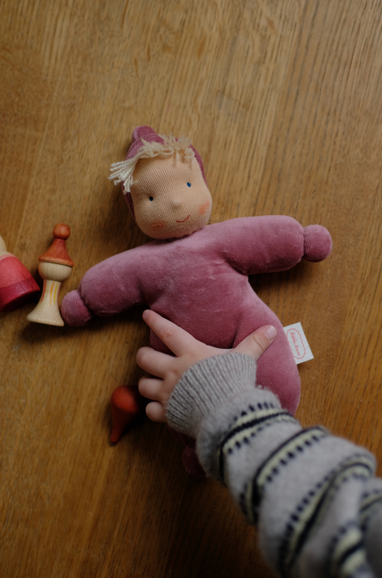 Uansett hvor dagen fører, er Lolo alltid klar til å bli med. Hver Lolo er nøye håndlaget, med et vennlig ansikt og mykt hår som inviterer til lek, kos og nærhet. Den naturlige varmen i materialene gjør dukken til en trygg følgesvenn – både i hverdagen og på eventyr.