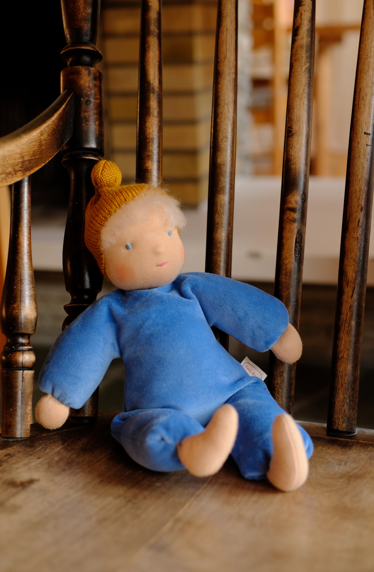Nana er den største kosedukken i Waldorf-dukkefamilien til Käthe Kruse– en myk og god venn som alltid er der, uansett hvor dagen fører. Hun gir trøst, selskap og trygghet, enten hun blir med i vognen, i sengen eller i leken.