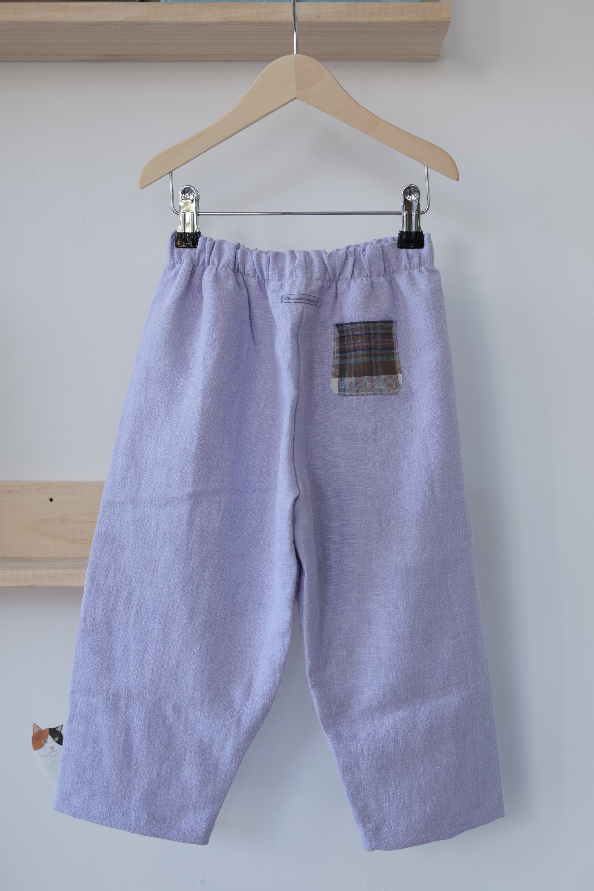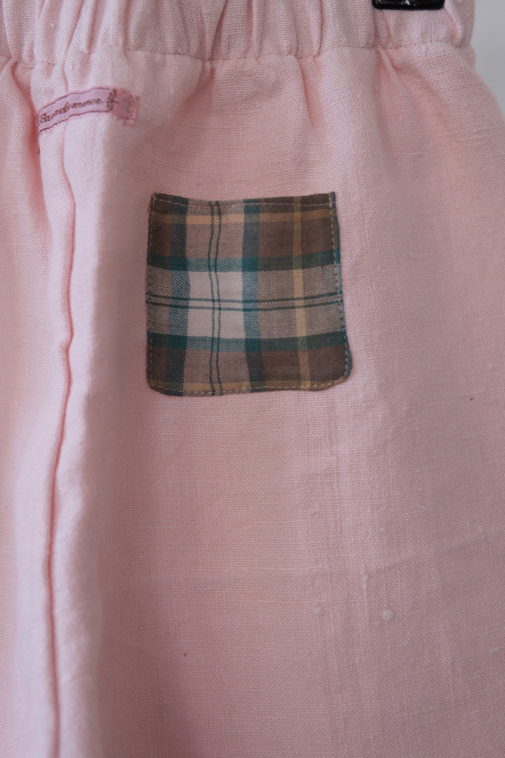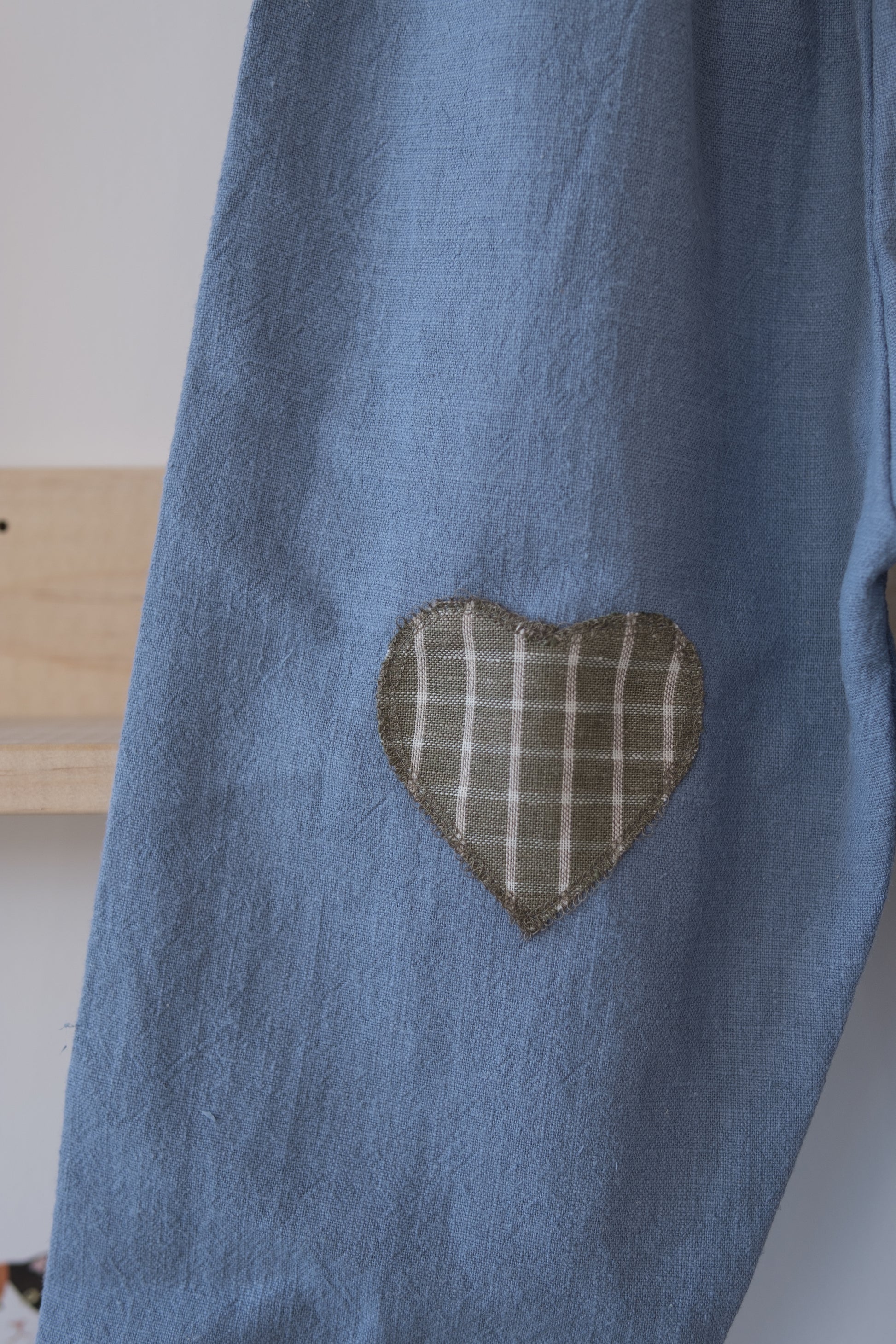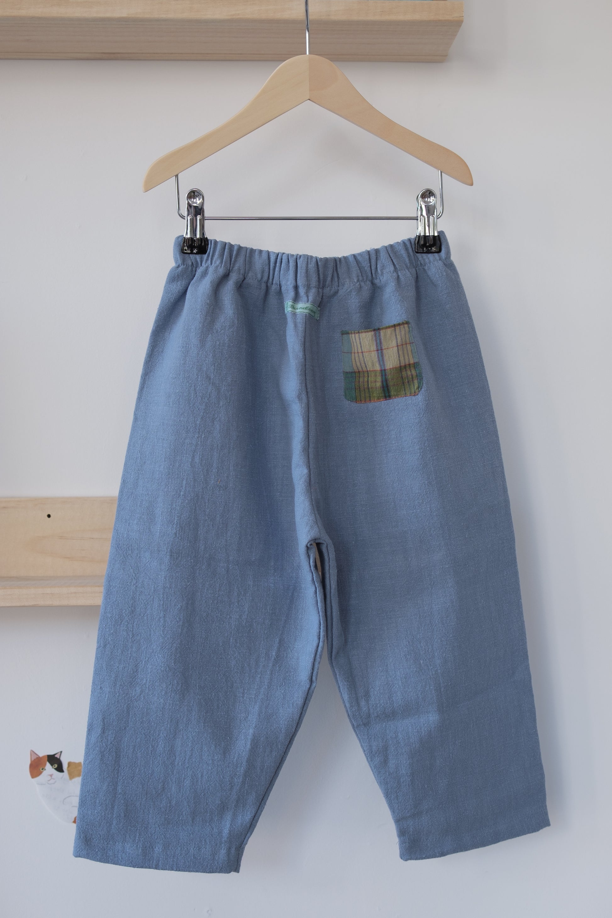 Denne håndlagde lappebuksen fra Barnekammer er sydd i København av preloved og deadstock-stoffer fra Skandinavia. Hver bukse er unik – med varierende stofftykkelser, farger og teksturer. Noen er i myk bomull, andre i slitesterkt stonewashed lin.