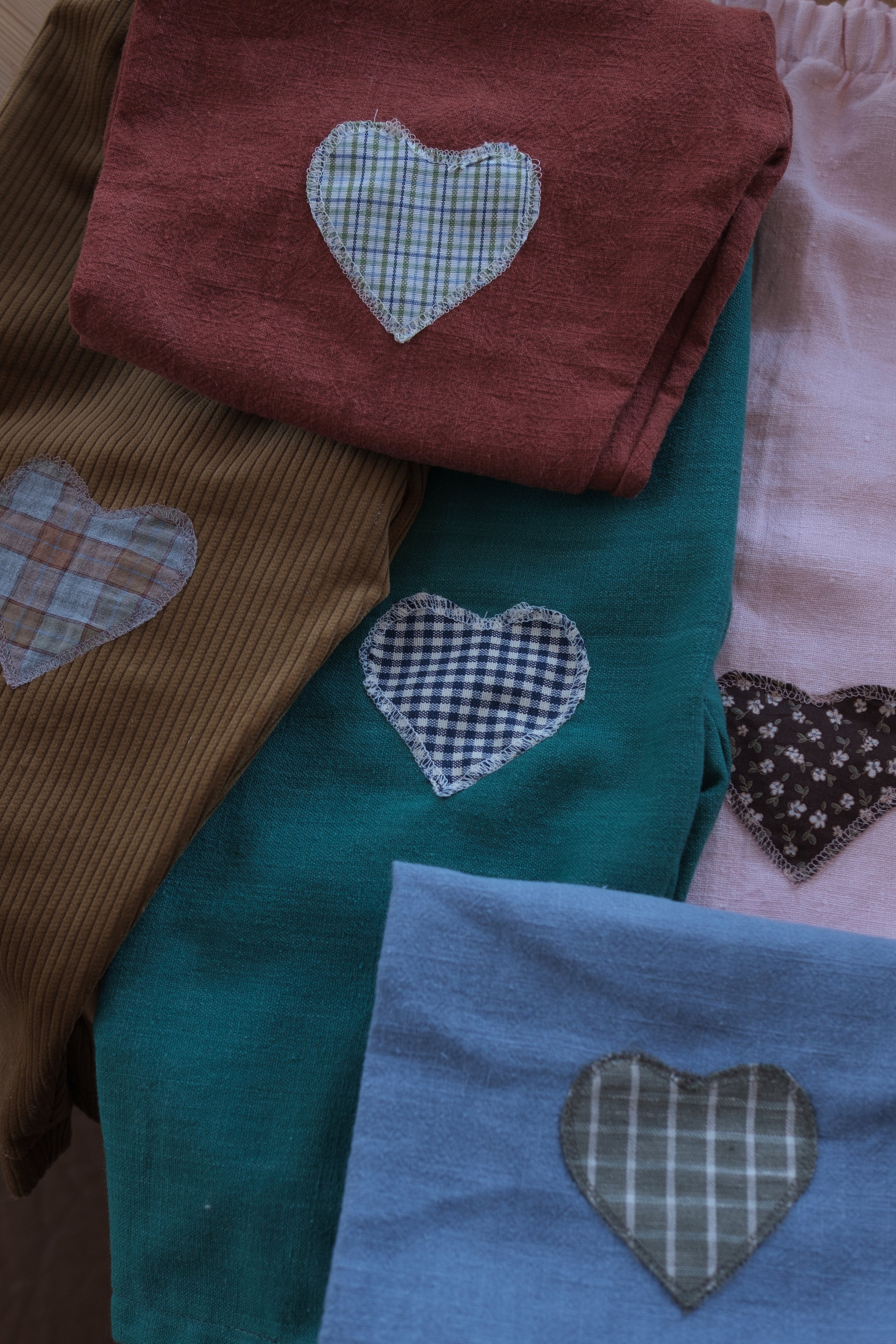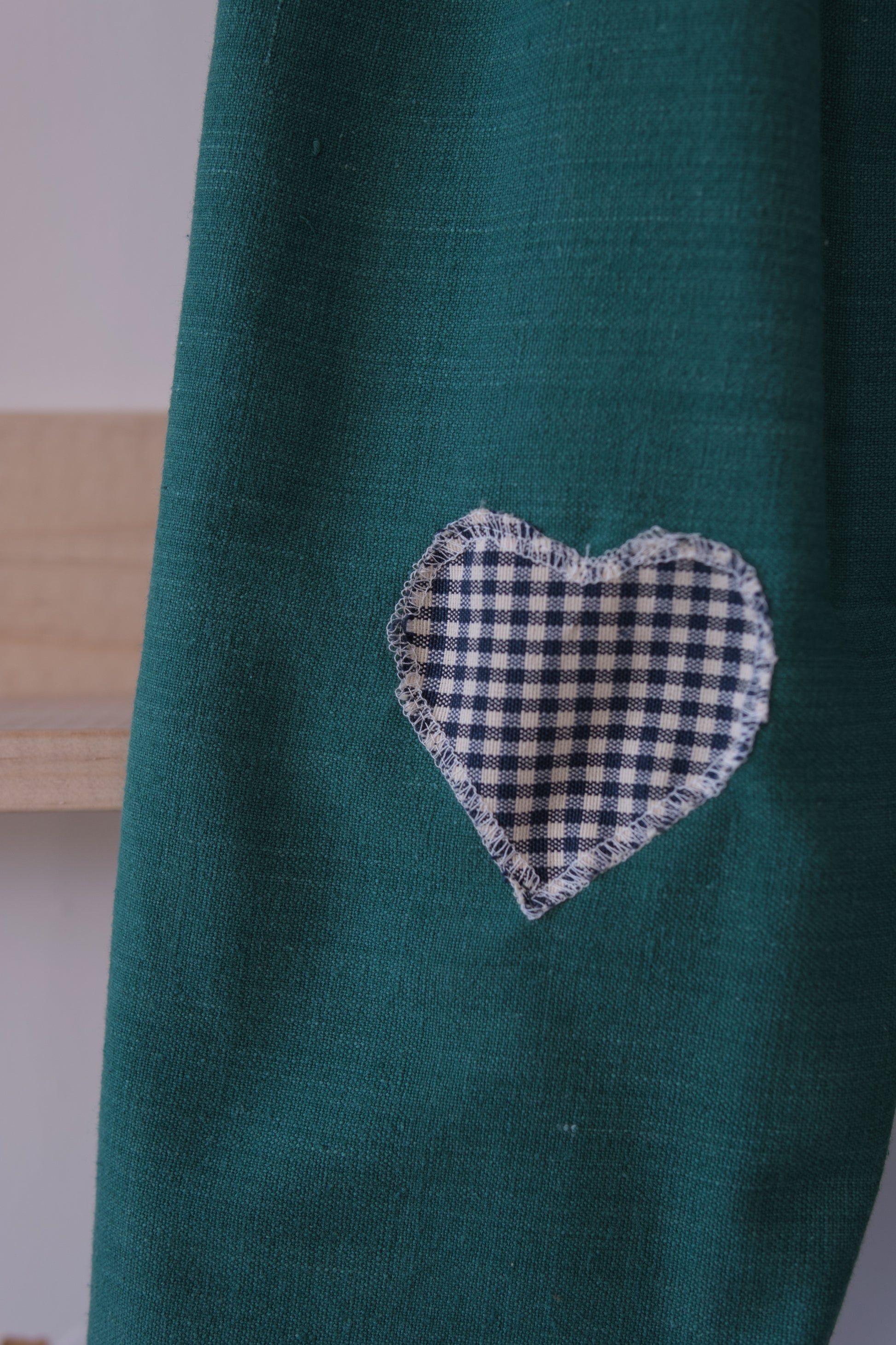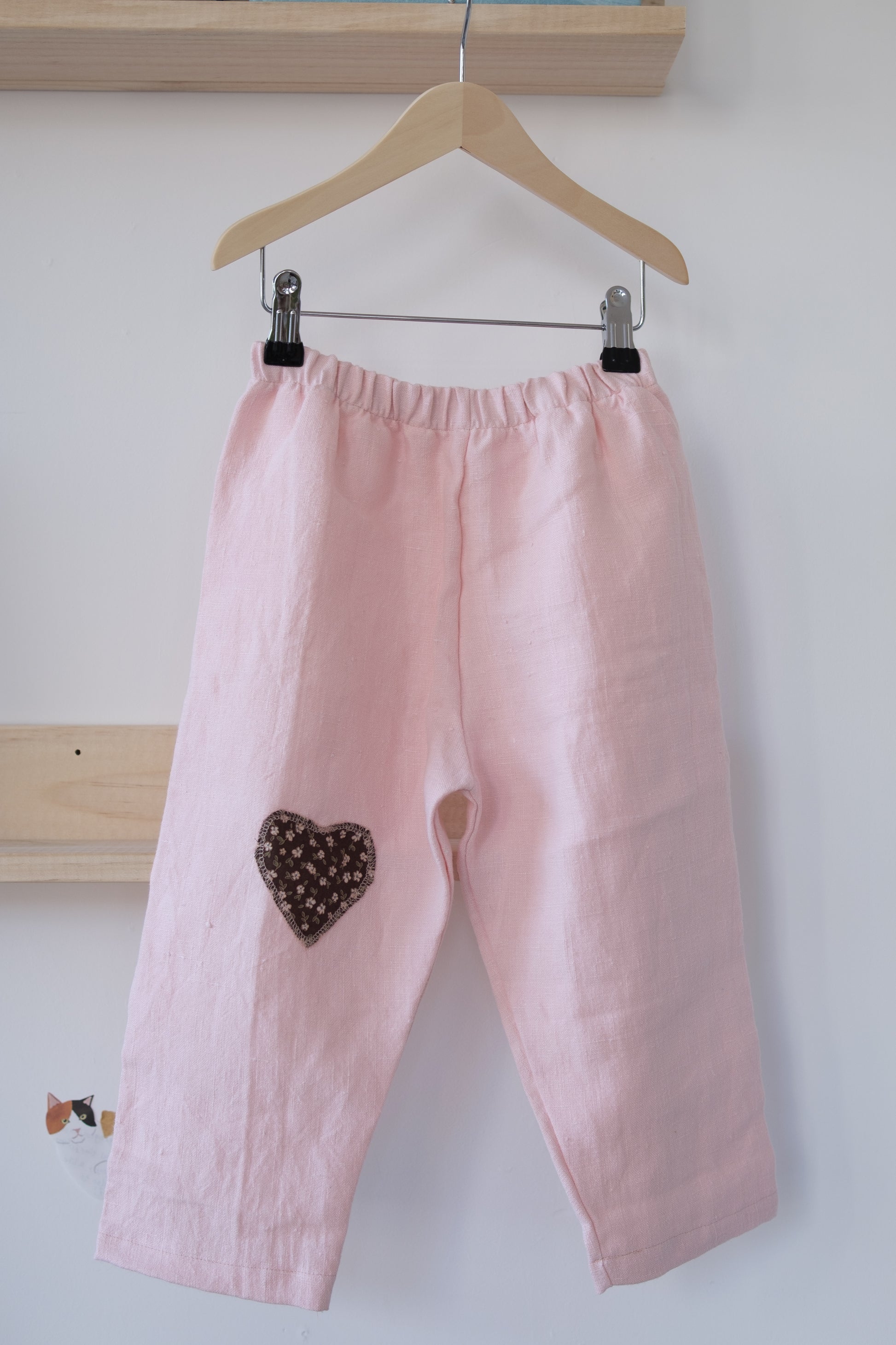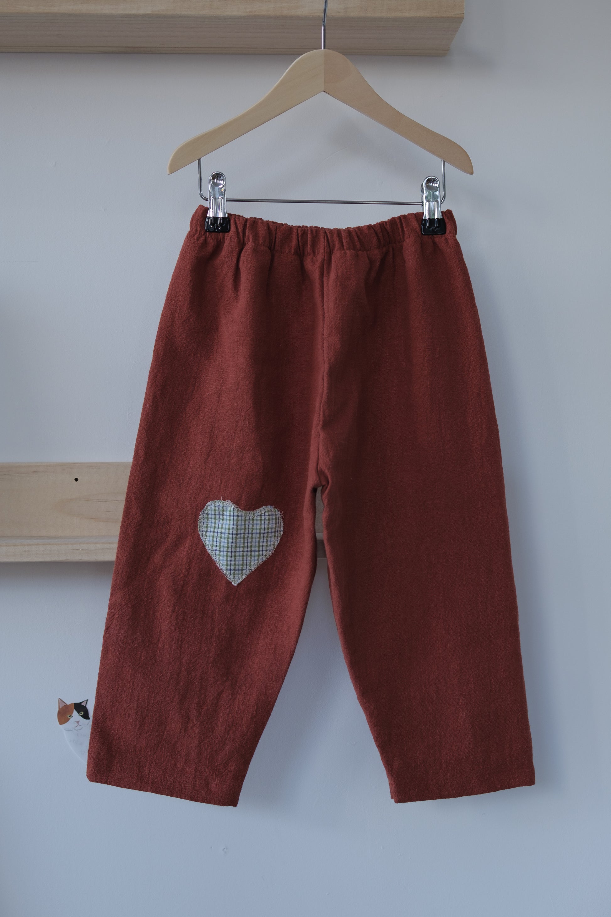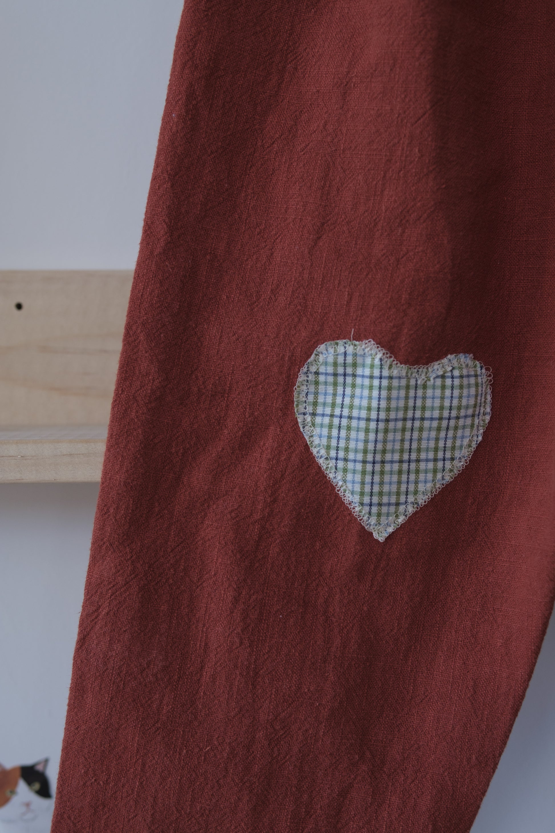 Denne håndlagde lappebuksen fra Barnekammer er sydd i København av preloved og deadstock-stoffer fra Skandinavia. Hver bukse er unik – med varierende stofftykkelser, farger og teksturer. Noen er i myk bomull, andre i slitesterkt stonewashed lin.