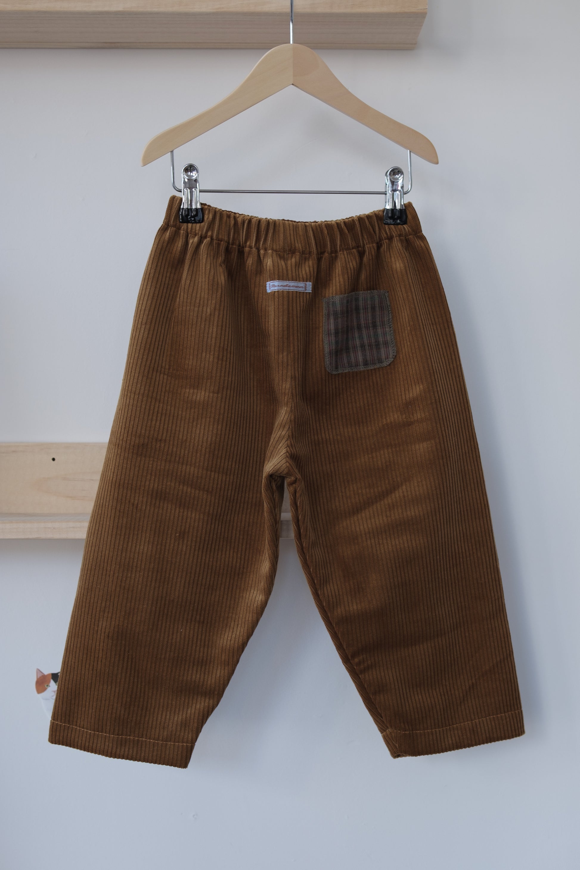 Den vide passformen og strikk i livet gir barnet god bevegelighet og komfort, mens de lekne detaljene – som en lapp på kneet eller en lomme i kontraststoff – gir buksene ekstra sjarm. Dette er bukser som tåler lek, kan brukes året rundt, og som kan gå i arv til familie og venner.