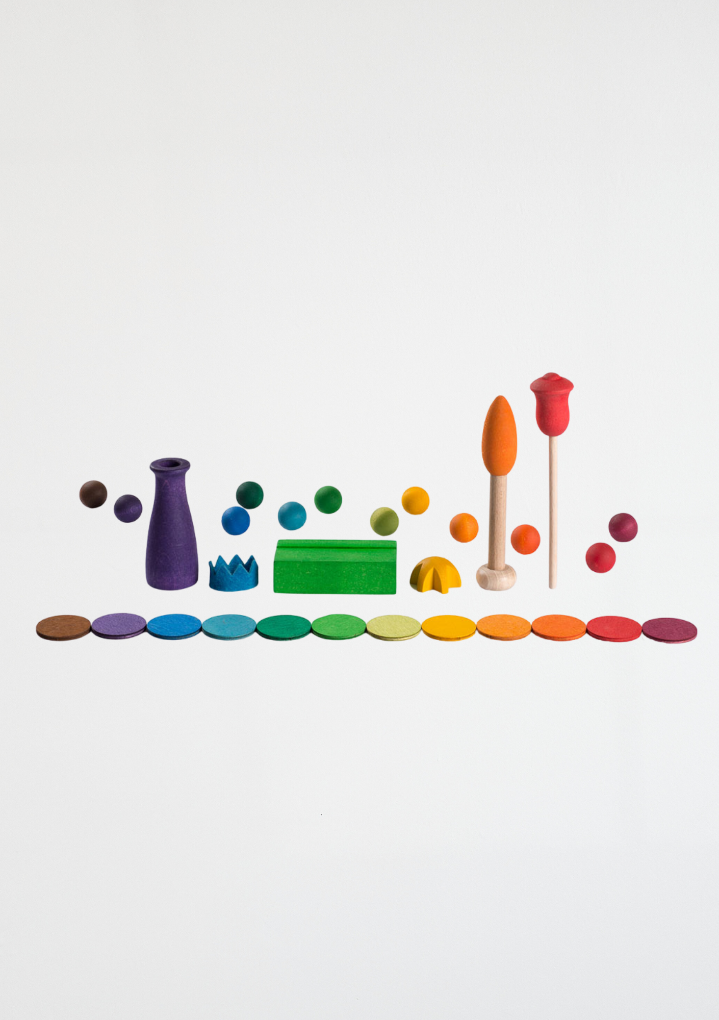 31 stykker / tre og filt / forskjellige størrelser, former og farger