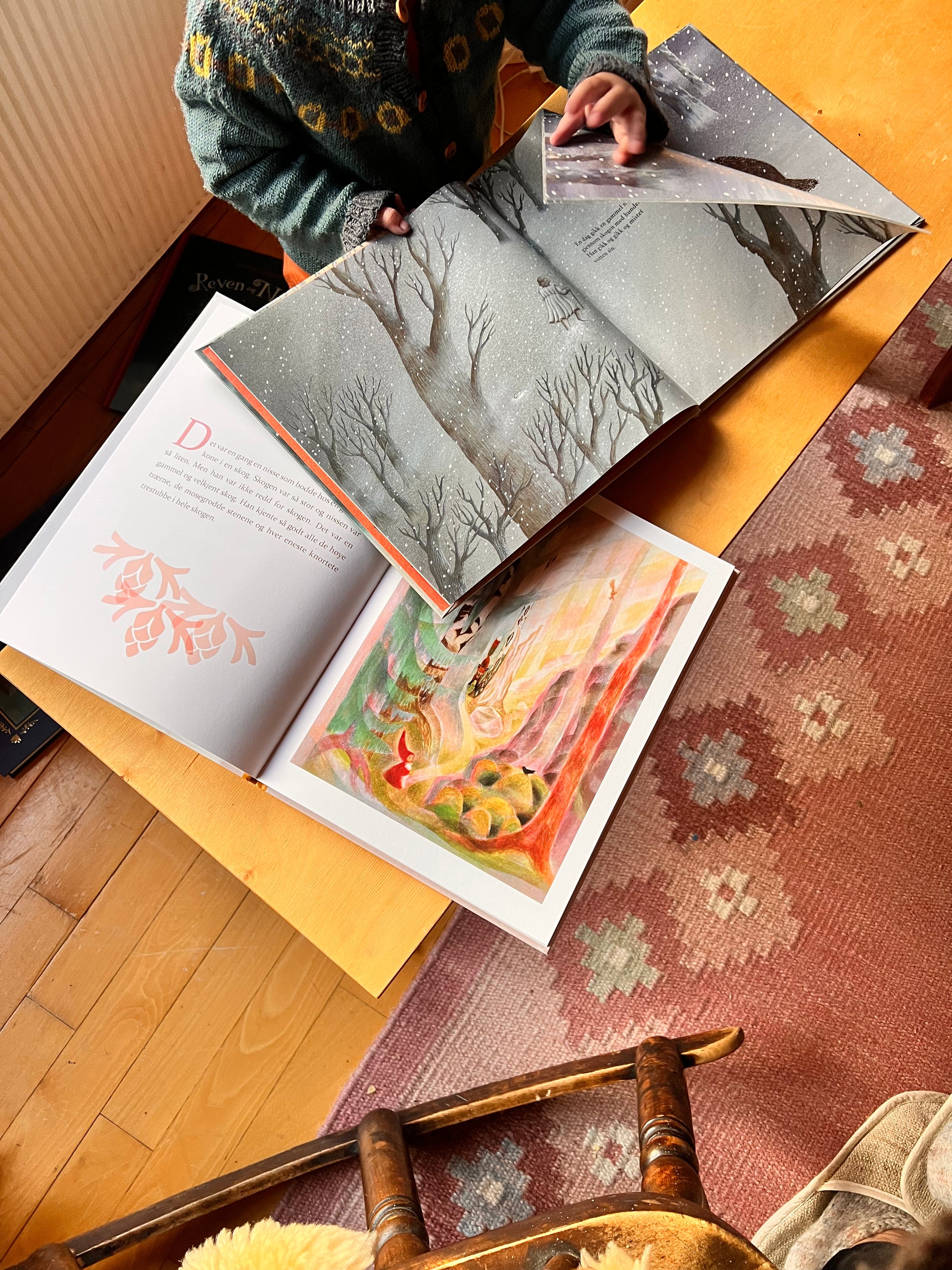 Det er ikke lett for en liten nisse å trekke hjem et stort lass ved, men skogen er full av små skapninger som gjerne vil hjelpe... Et enkelt eventyr om vennskap, innrammet av vinterskogens fortryllelse. Boken er illustrert av Grete Folkmann Hågvar, som gjennom mange år arbeidet i Regnbuen Steinerbarnehage, hvor stadig nye barn lot seg begeistre når eventyret om Nissen Rusk ble fortalt. Hun studerte maleri i Tyskland fra 1976 til 1982 ved Alanus kunsthøyskole hos Wilfried Ogilvie, maler, skulptør, arkitekt og skolens initiativtager.