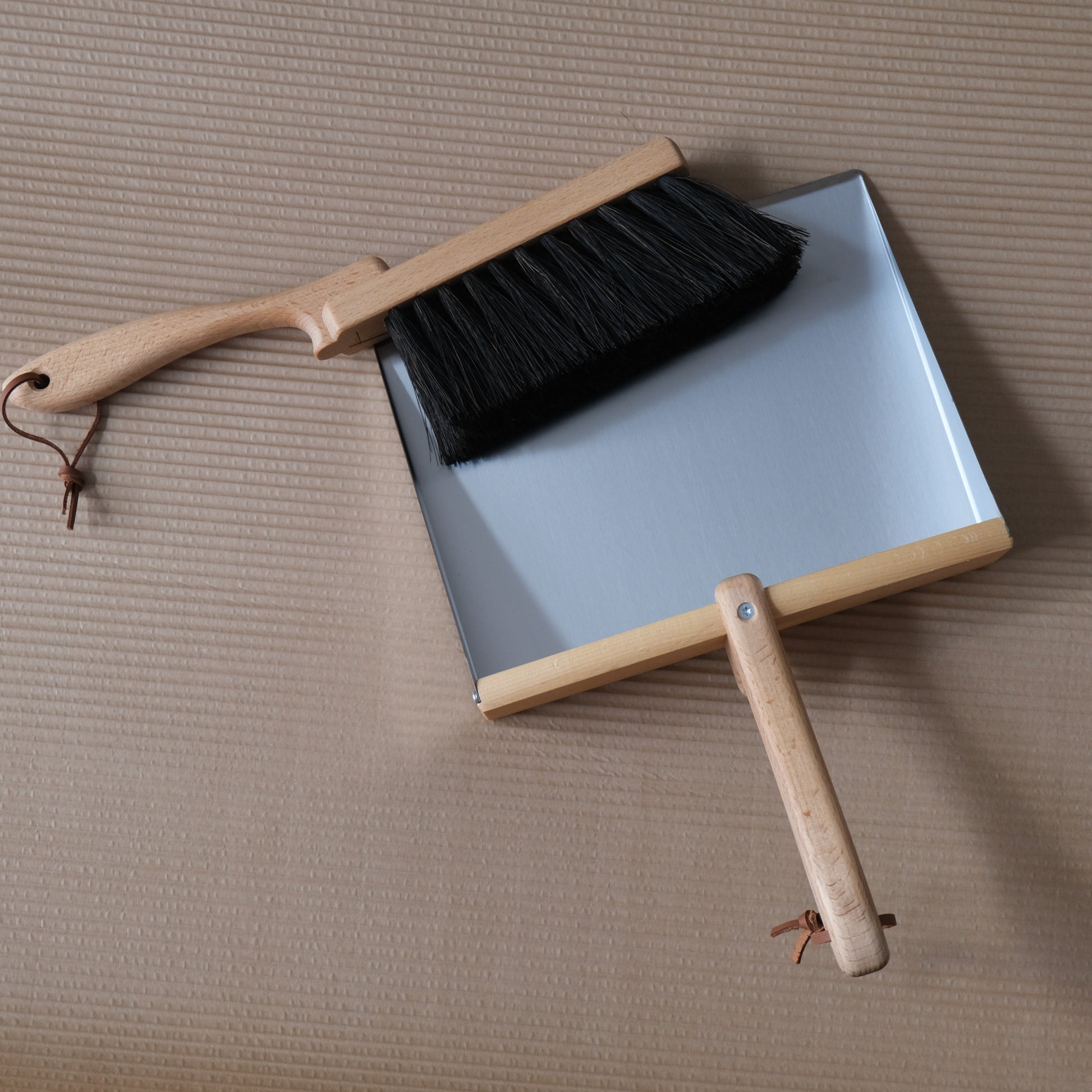 Et solid og praktisk sett med kost og feiebrett til å koste opp støv, smuler og søppel.