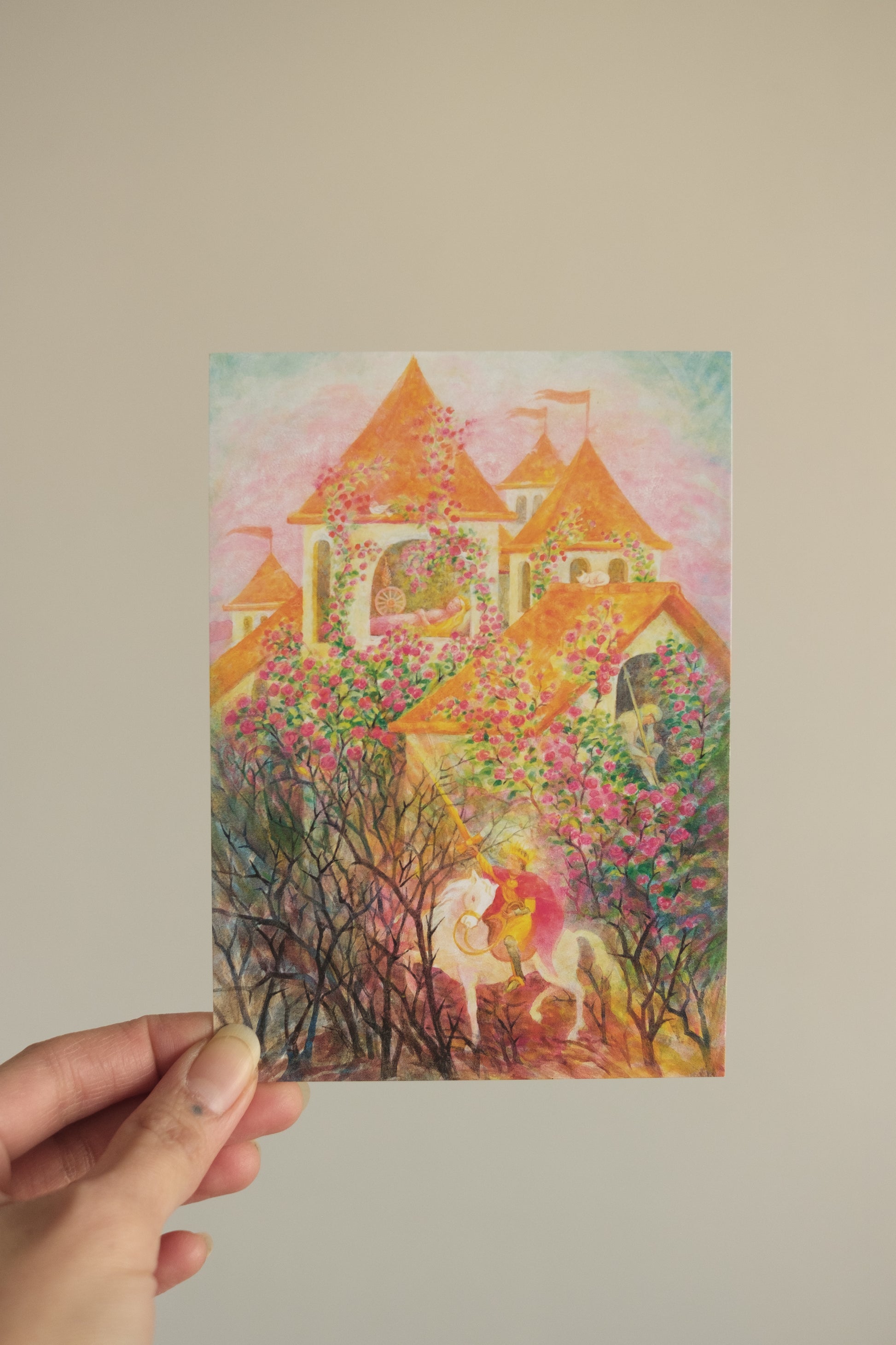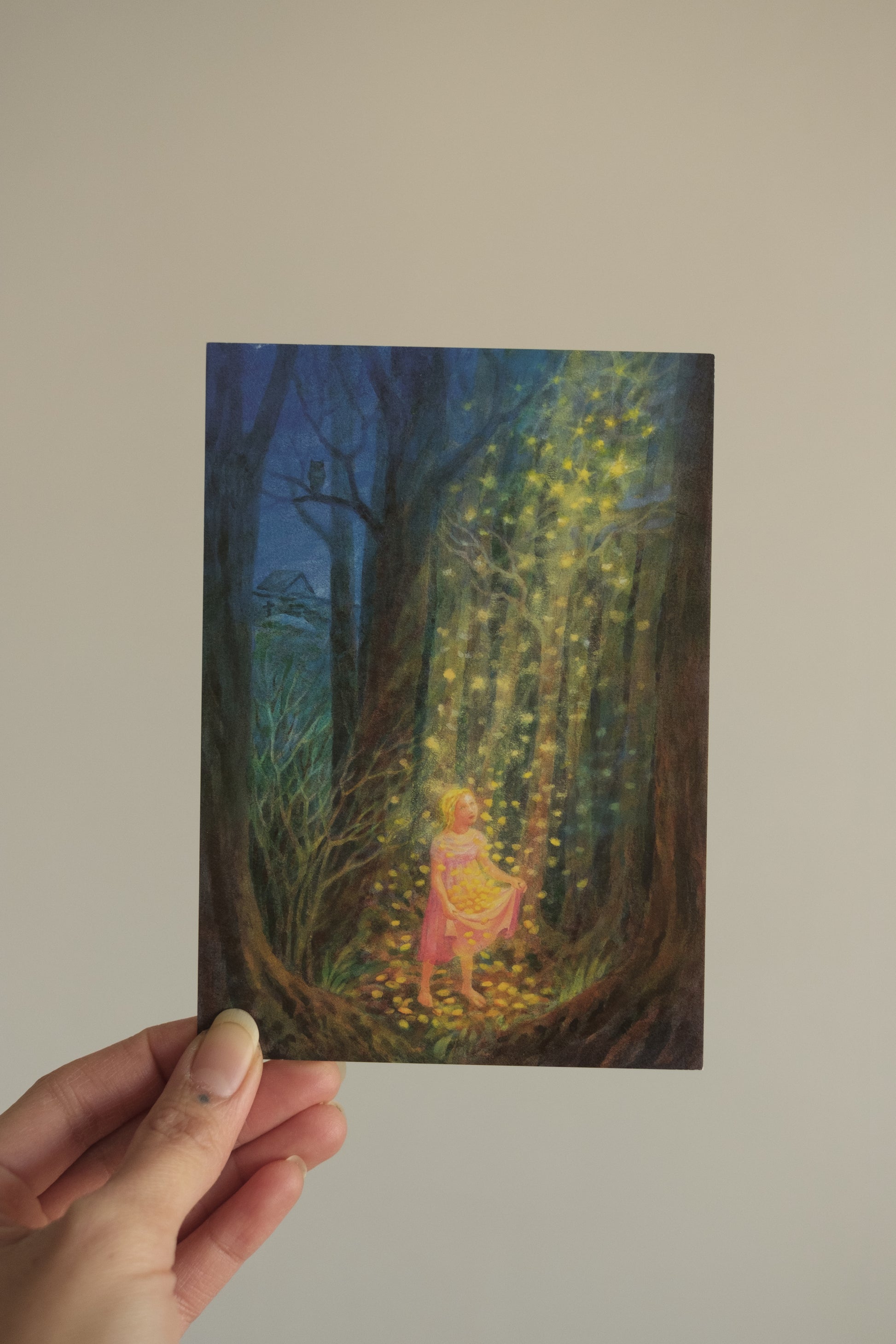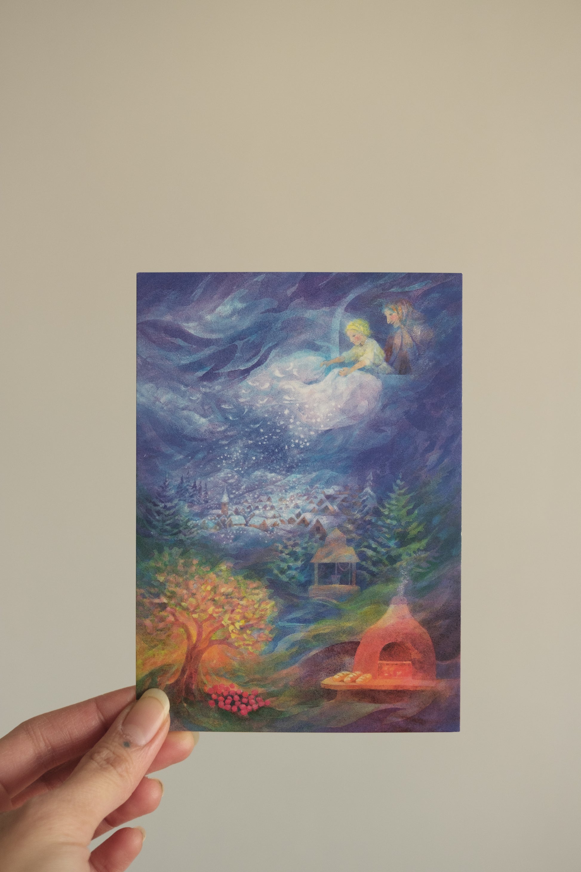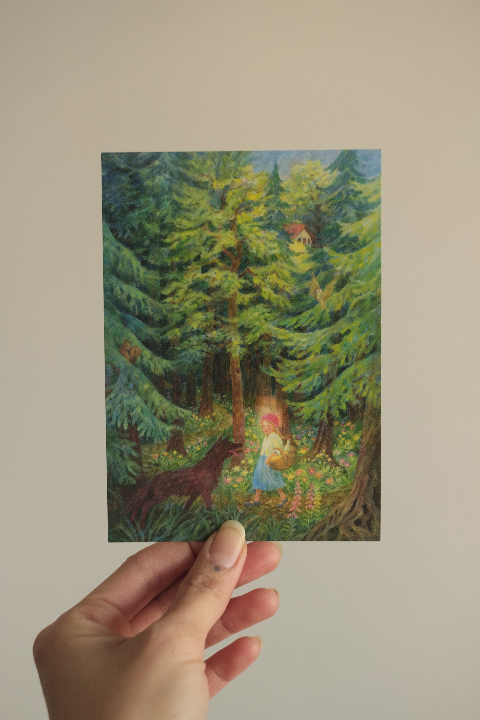 Koselige kort med motiv av eventyrfigurer fra eventyr skrevet av brødrene Grimm. Superskjønne til å henge på veggen, sende til en venn eller bruke som bursdag- eller julekort.