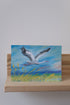 Et stemningsfullt kunstkort med motiv av Natalya Yeshchenko, hentet fra verket Fliegender Storch. Bildet viser en stork i majestetisk flukt over et fargerikt landskap – en fri og poetisk skildring av naturens ro og bevegelse.