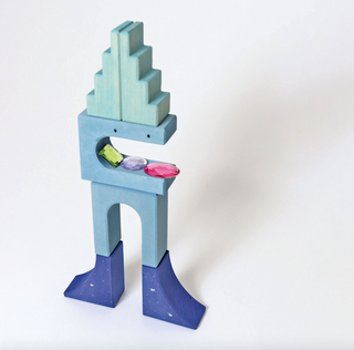 De luftige pastelltonene til Konstruksjonverden - Nordlys gir det massive treet en delikat letthet. Byggematerialene kommer i et bredt utvalg av former som tillater fantasifull fri bygging og vil utfylle GRIMM'S sortiment med sine fantastiske detaljer, som asymmetriske kanter og en monterbar, bevegelig dør. Våre byggeverdener kommer i en hendig ramme og venter bare på å bli overtatt med fantasien til et barn. Settet inviterer deg til å bruke fantasien din og skape nye verdener.
