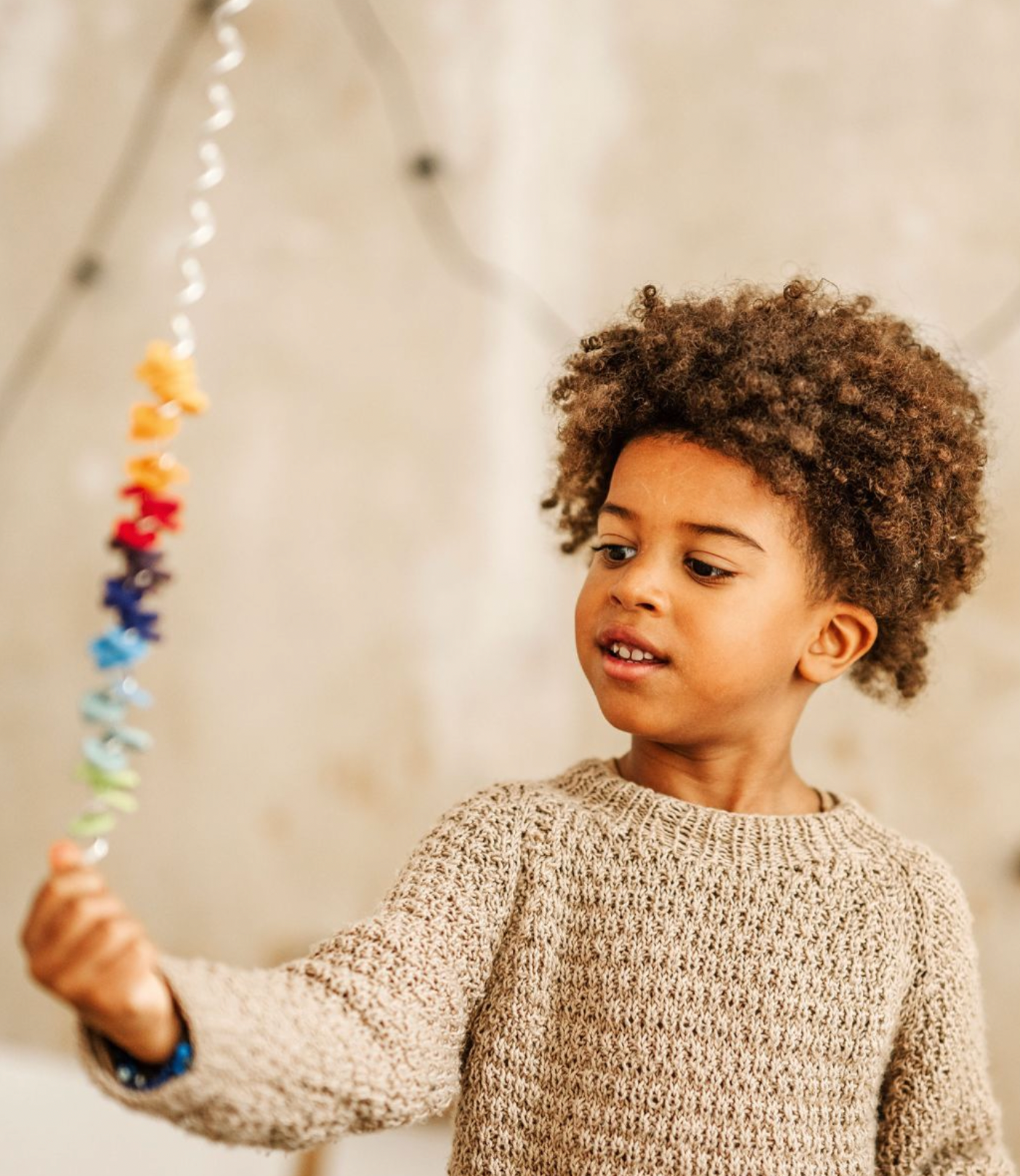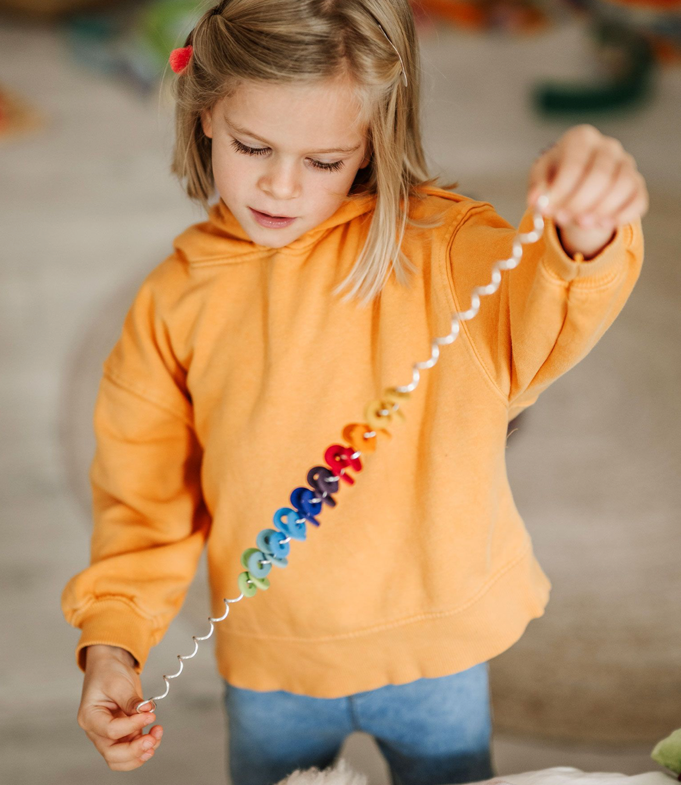 Et fengslende leketøy for alle aldre (fra 3 år og opp - voksne elsker det også). Enkel, men smart, fascinerende og fargerik. Hold spirellien loddrett, snu deretter opp ned og se på treringene kaskade nedover spiralen, og gi en kul susende lyd mens de går. Materialer: bøk, ikke-giftig vannbasert maling. Størrelse: lengde 52cm.