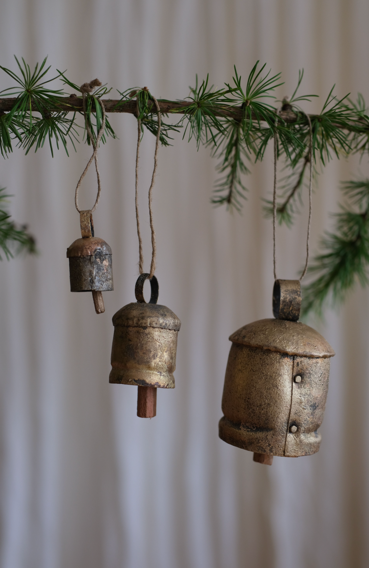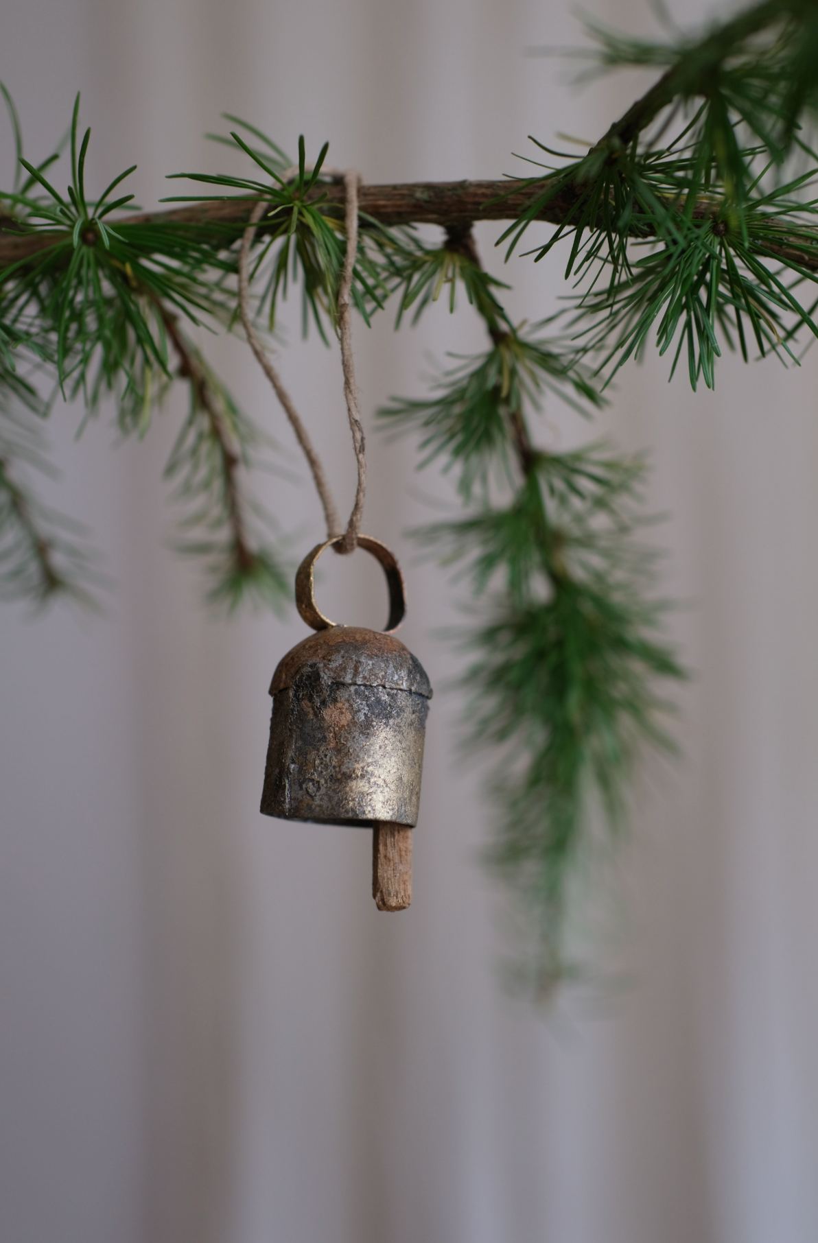 En liten håndlaget bjelle som gir en enkel og stemningsfull lyd. Heng den på døren for en fredelig klang hver gang du åpner den, eller bruk den som dekor på juletreet.