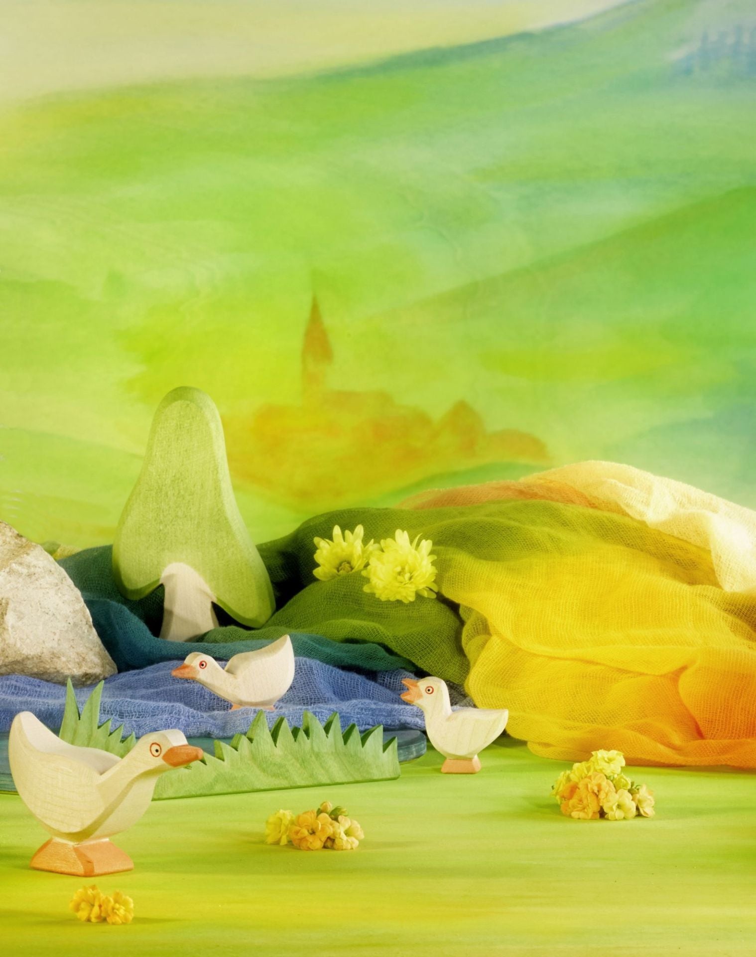 Supersøt gås i tre. Den er håndskåret, håndpusset og håndmalt av dyktige håndverkere i Tyskland.