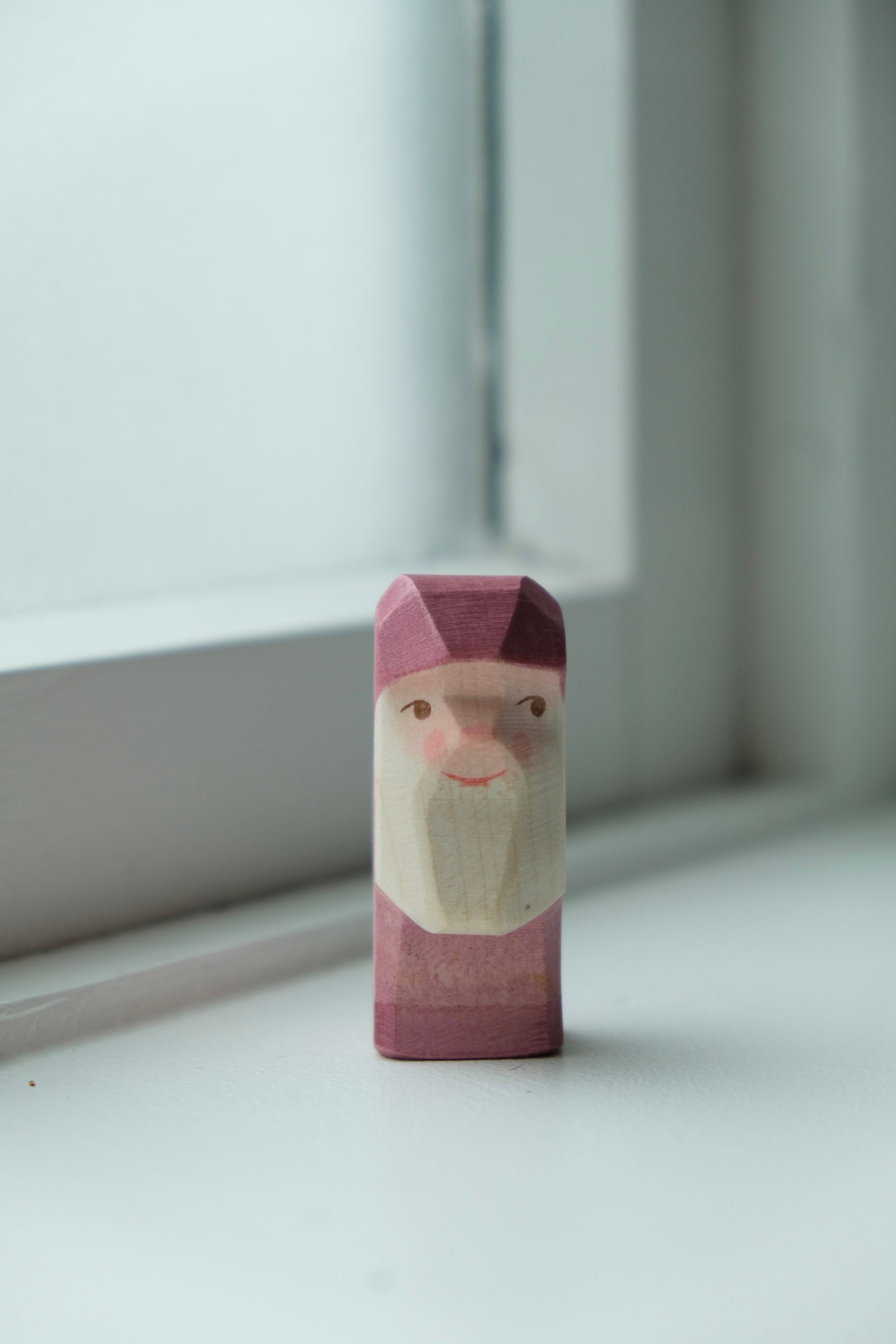 Håndlaget lilla dverg i tre. Passer til figuren Snow white.