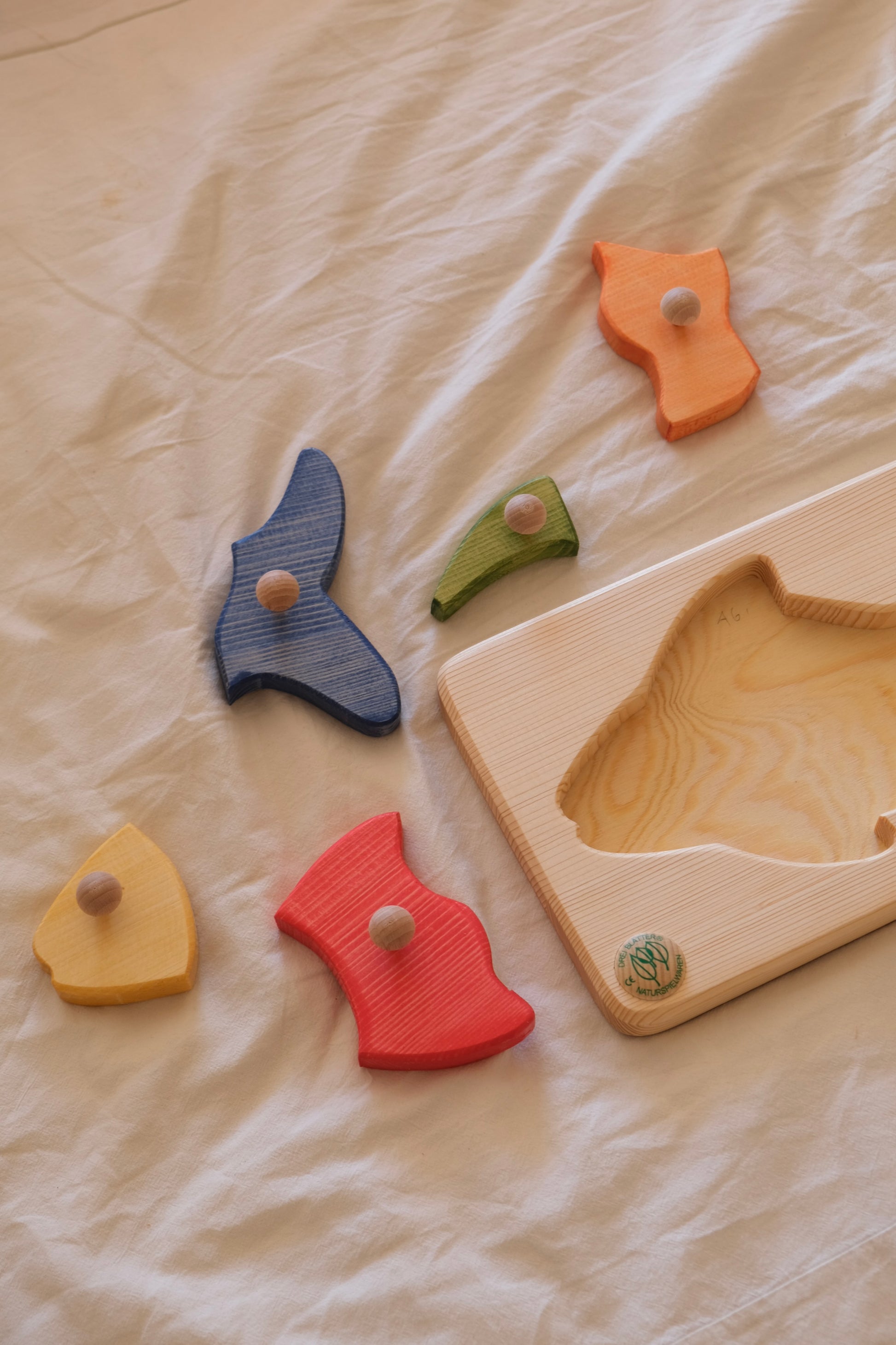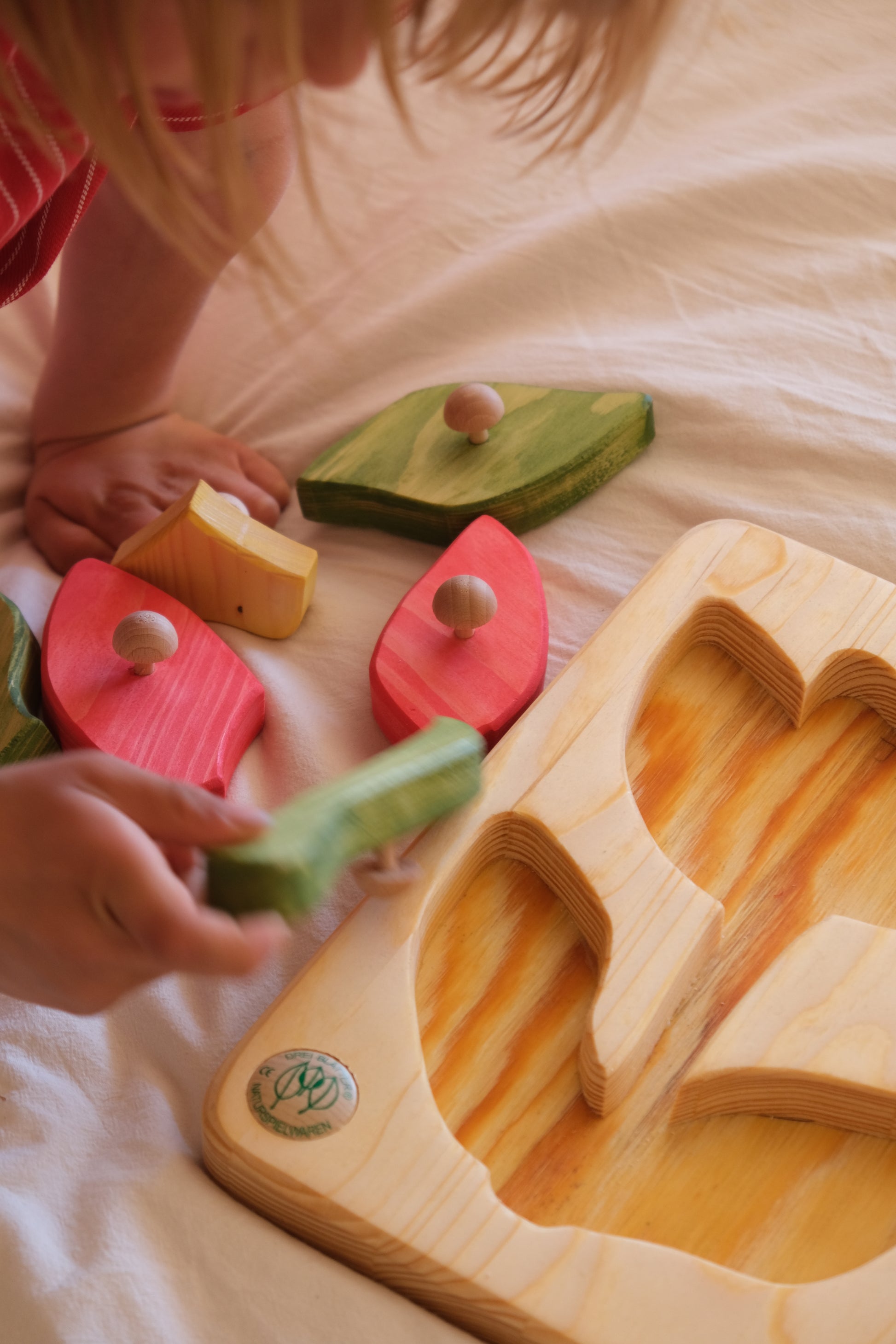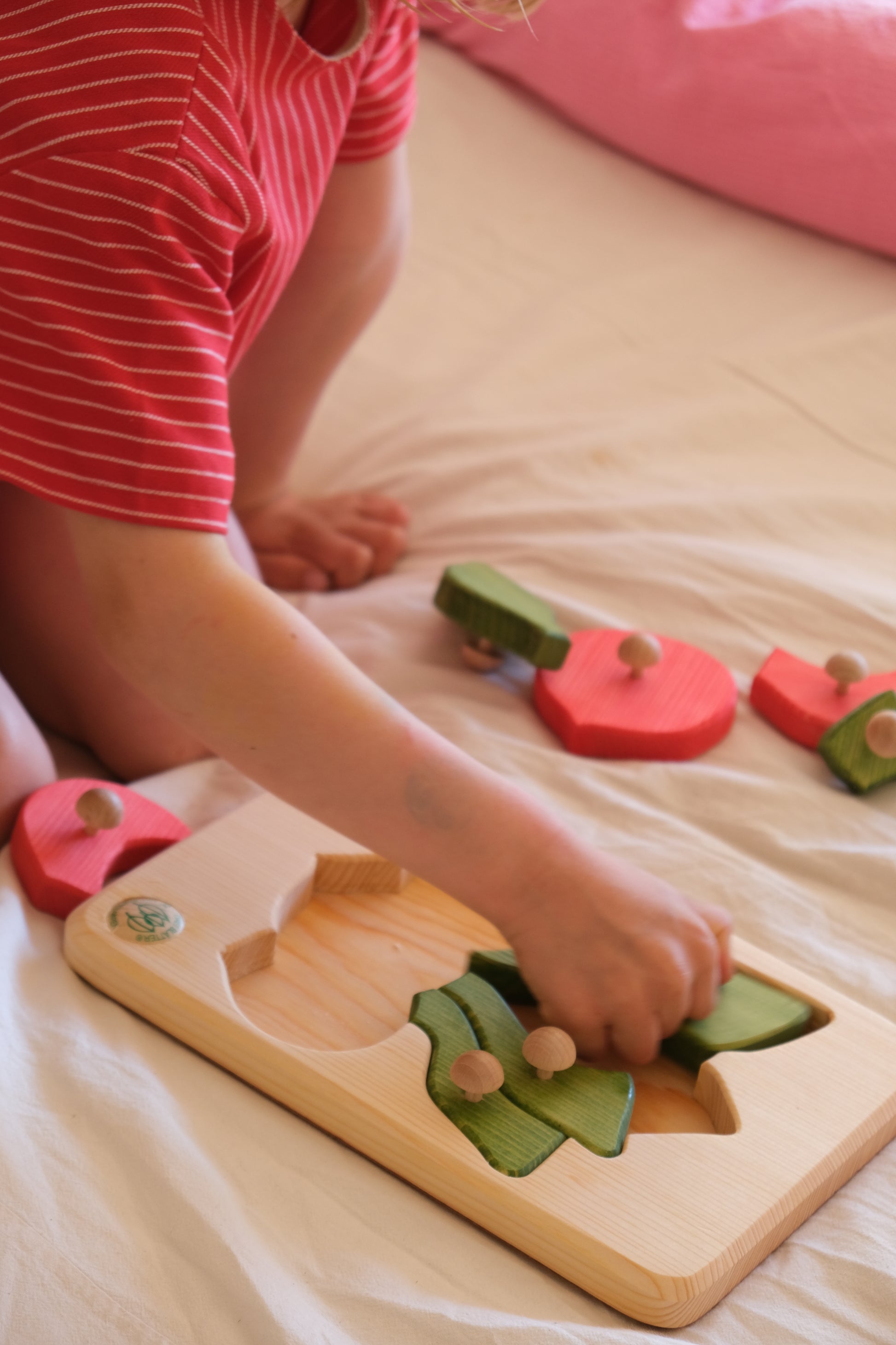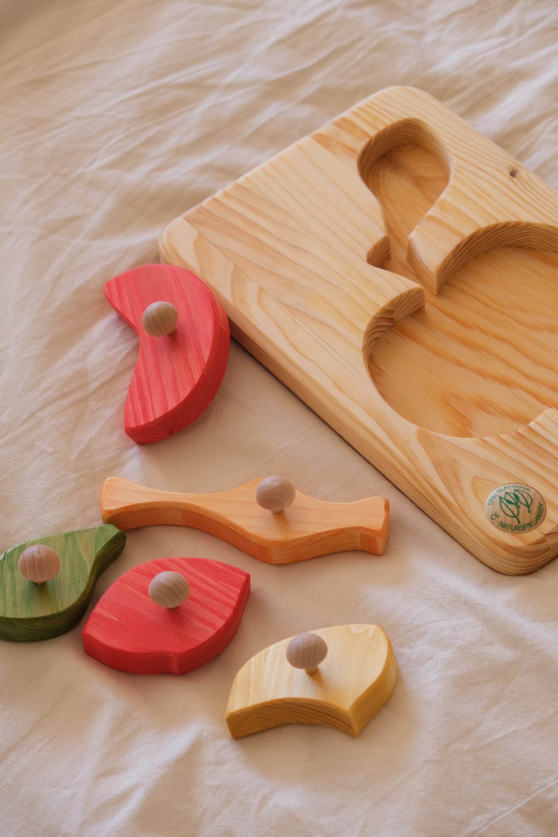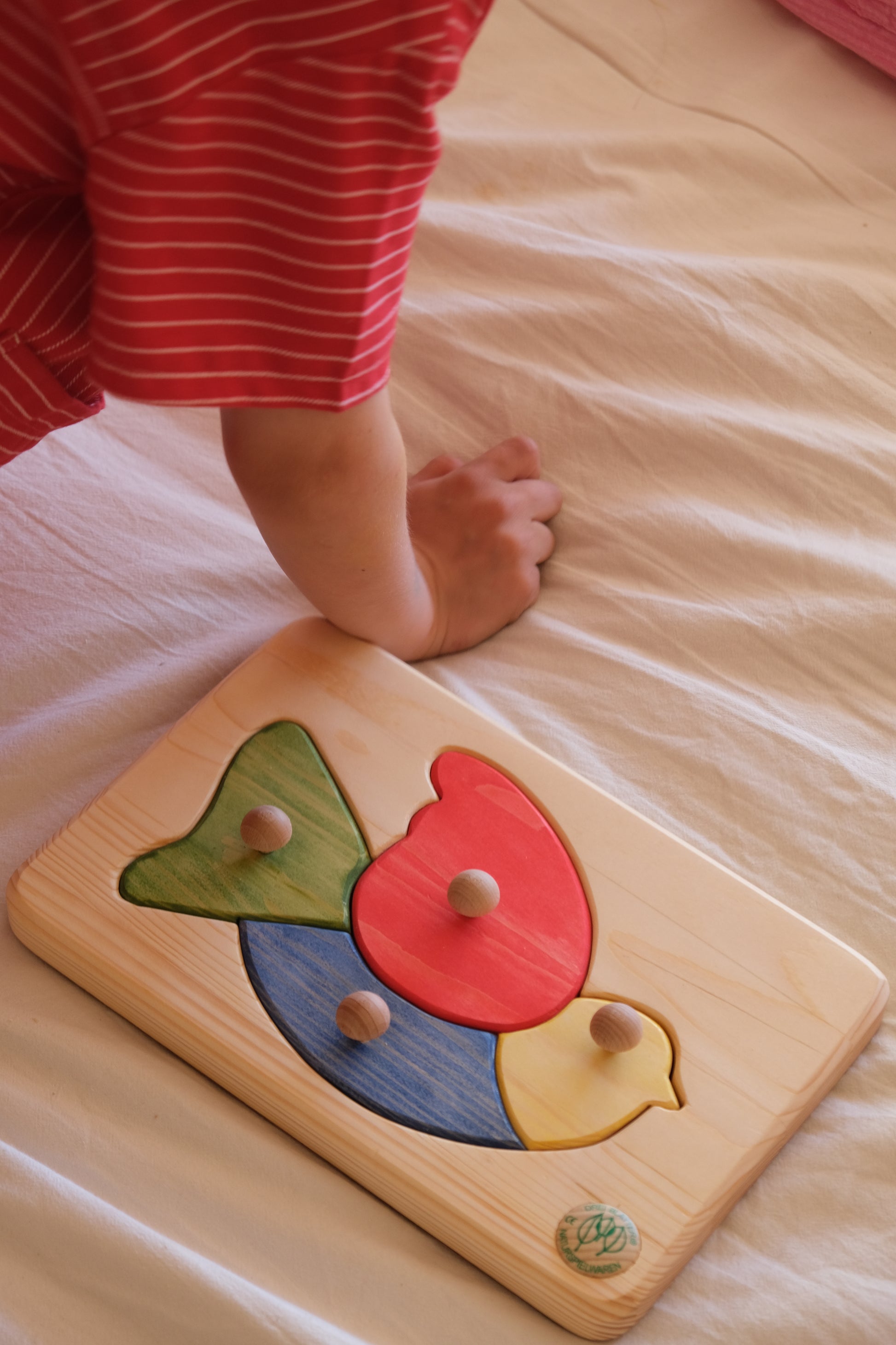 De store knottene på brikkene lar små barn lettere håndtere puslespillene.