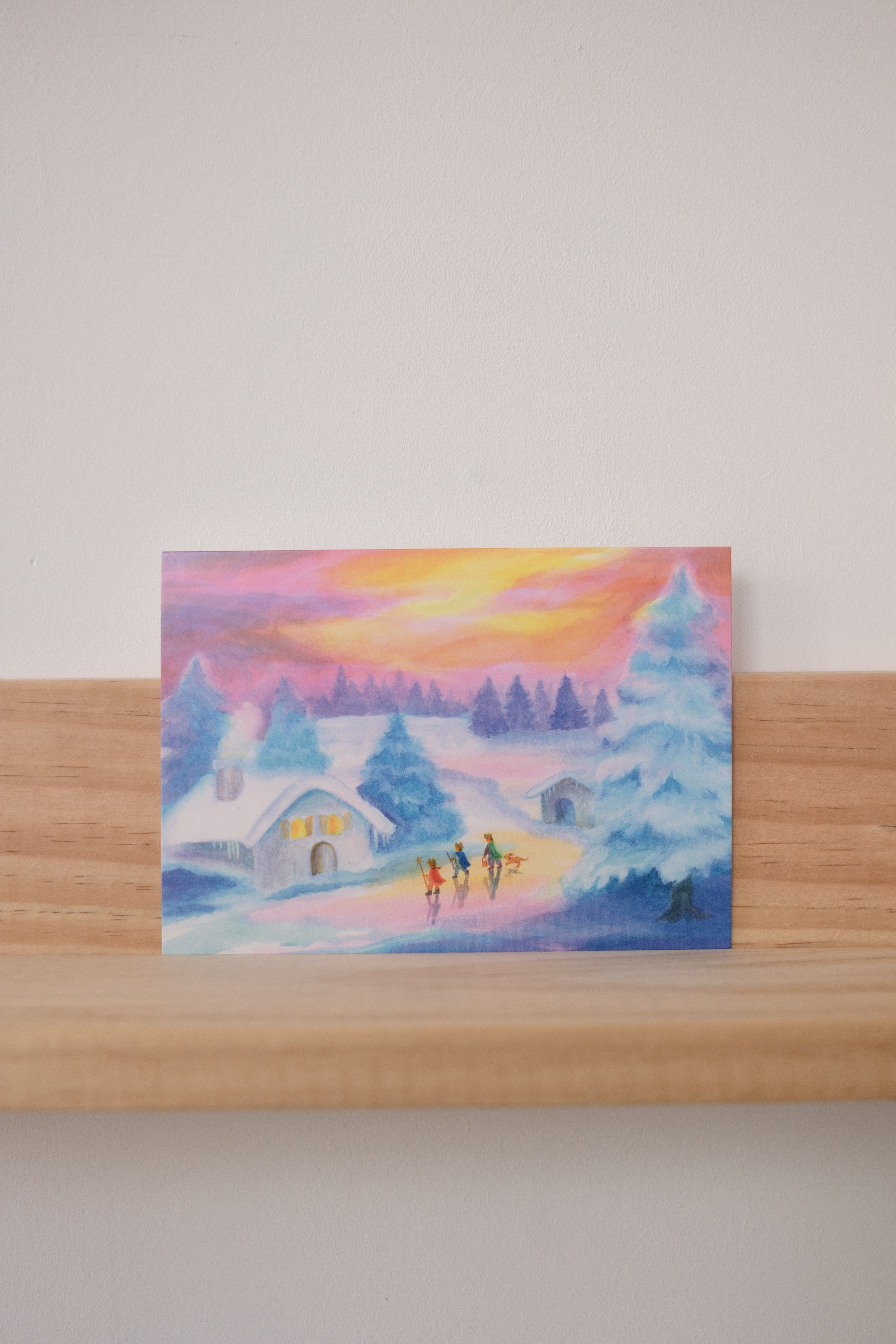 Et stemningsfullt motiv håndplukket av Små spor ut fra tusenvis av vakre motiv! Ingenting gir mer stemning en en vakker illustrasjon eller et maleri. Disse kortene er nydelige gaver og fantastiske motiv til barnerommet eller på innsiden av kjøkkenskapet. Kjøp en ramme fra Rahmen der du lett kan bytte ut kortet og endre fra sesong til sesong.