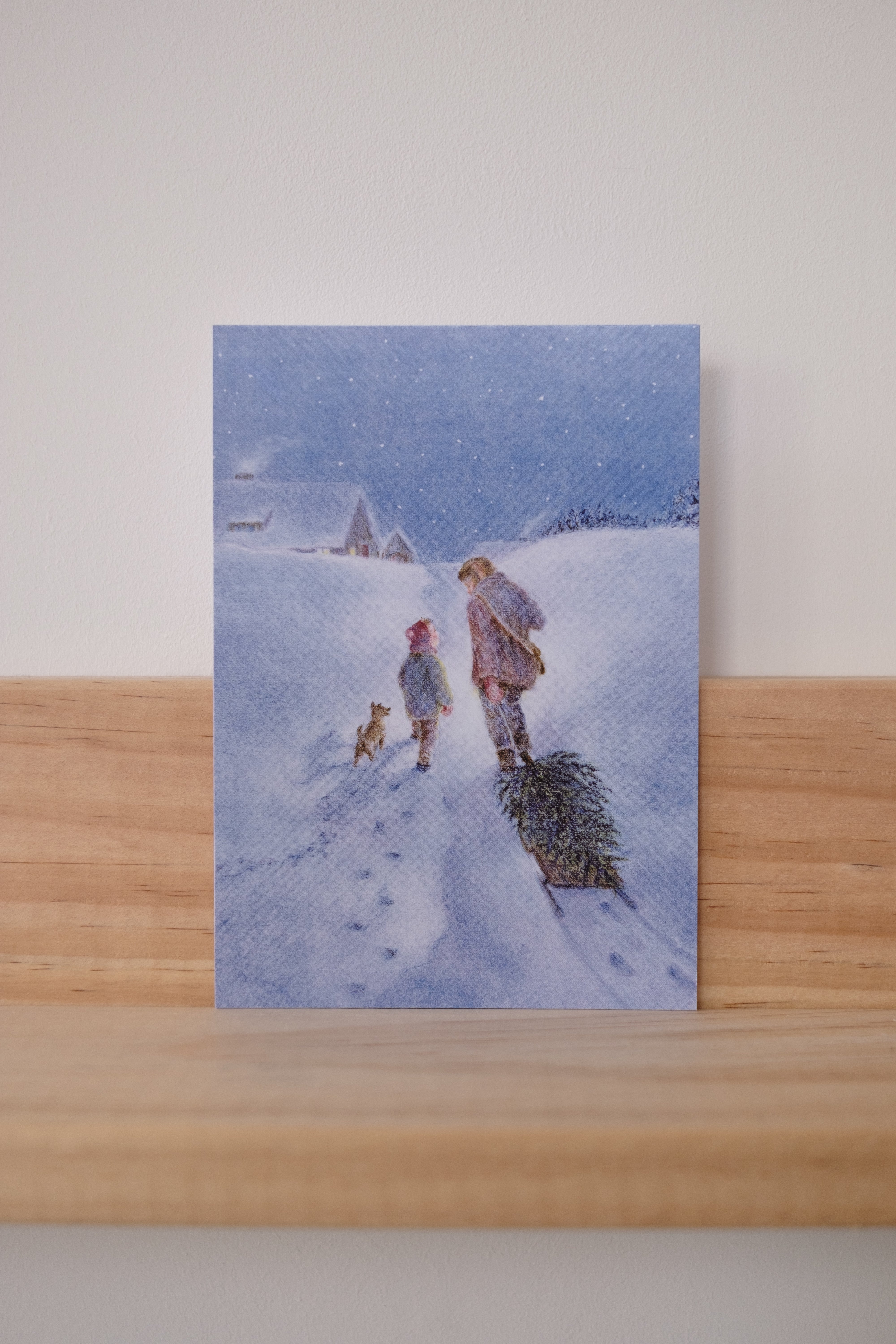 Et stemningsfullt motiv håndplukket av Små spor ut fra tusenvis av vakre motiv! Ingenting gir mer stemning en en vakker illustrasjon eller et maleri. Disse kortene er nydelige gaver og fantastiske motiv til barnerommet eller på innsiden av kjøkkenskapet. Kjøp en ramme fra Rahmen der du lett kan bytte ut kortet og endre fra sesong til sesong.