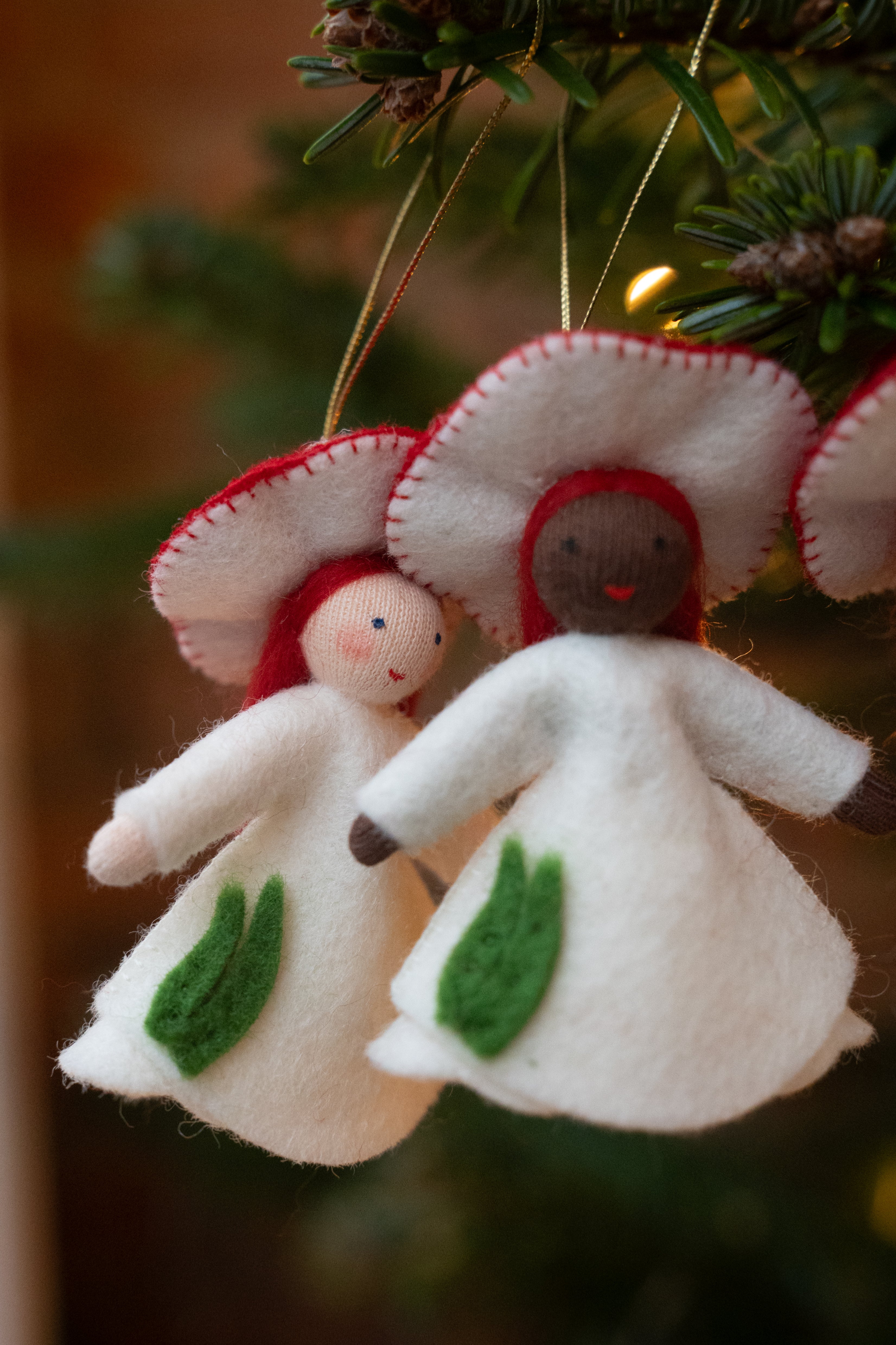 Ambrosius har håndlagde pyntedukker med de mest fantastiske detaljene. Det er ikke et eneste sting som er ut av orden. Dukkene er fine som pynt til sesongbordet eller barnerommet.