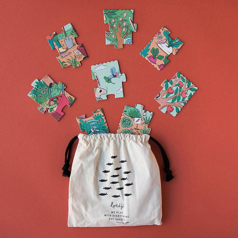 Når puslespillet er lagt, kan vi gå på oppdagelsesferd og finne alle fruktene og grønnsakene som gjemmer seg i hagefryden.