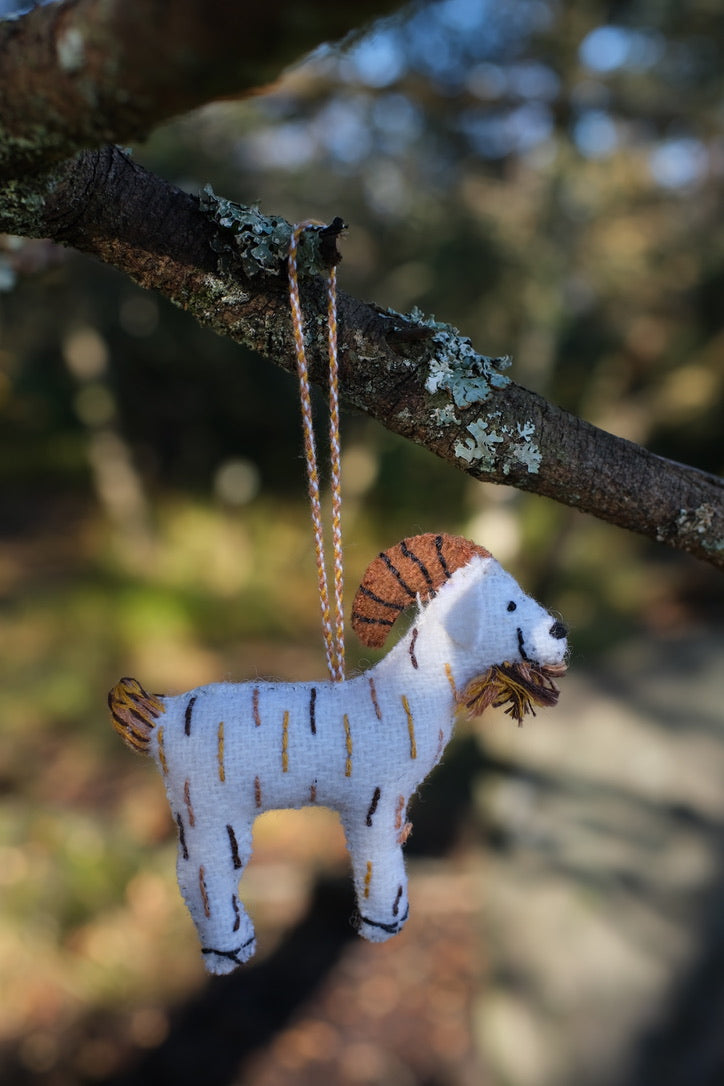 Sjarmerende, håndbroderte dyr laget av myk filt. Hvert dyr er unikt, håndlaget av afghanske kvinner gjennom Silaiwali — et sosialt prosjekt som gir arbeid og verdighet til flyktninger.