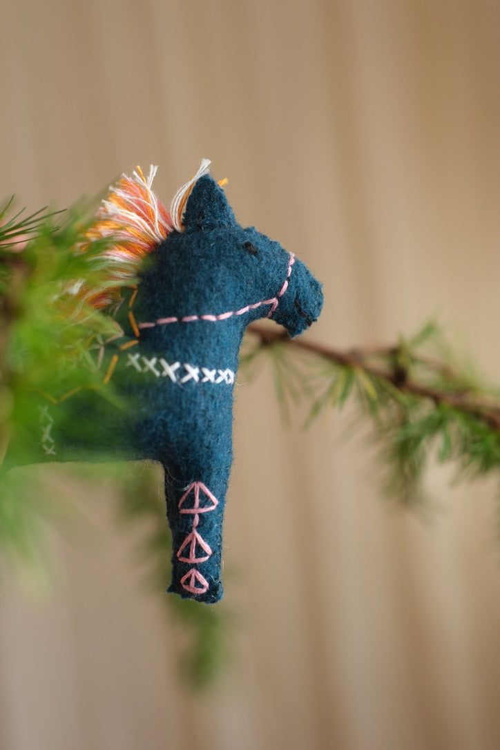 Hver pynt er unik, laget av gjenbrukte tekstiler og fylt med resirkulert polyester.