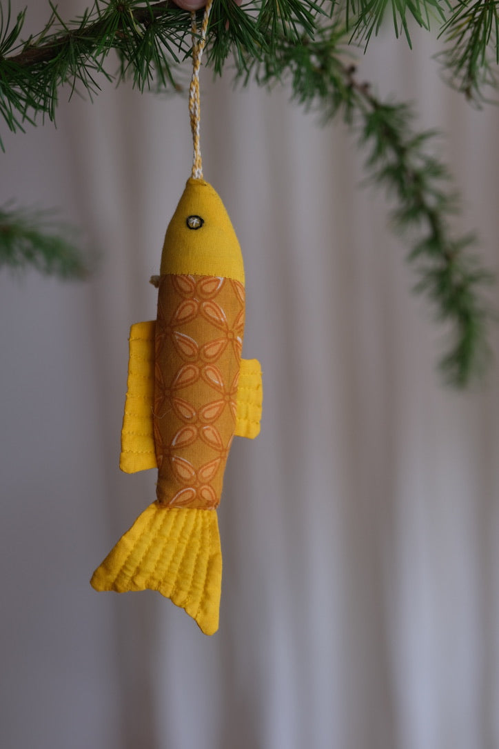 Lekker håndlaget fisk i fine farger. Laget av afghanske kvinner gjennom Silaiwali — et sosialt prosjekt som gir arbeid og verdighet til flyktninger.