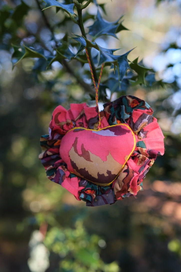 Loulou Heart er et vakkert, håndlaget tekstilhjerte laget av oppsirkulerte stoffrester. Hvert hjerte er unikt og bærer med seg en historie – skapt av afghanske flyktningkvinner som finner både arbeid og verdighet gjennom håndverket sitt.