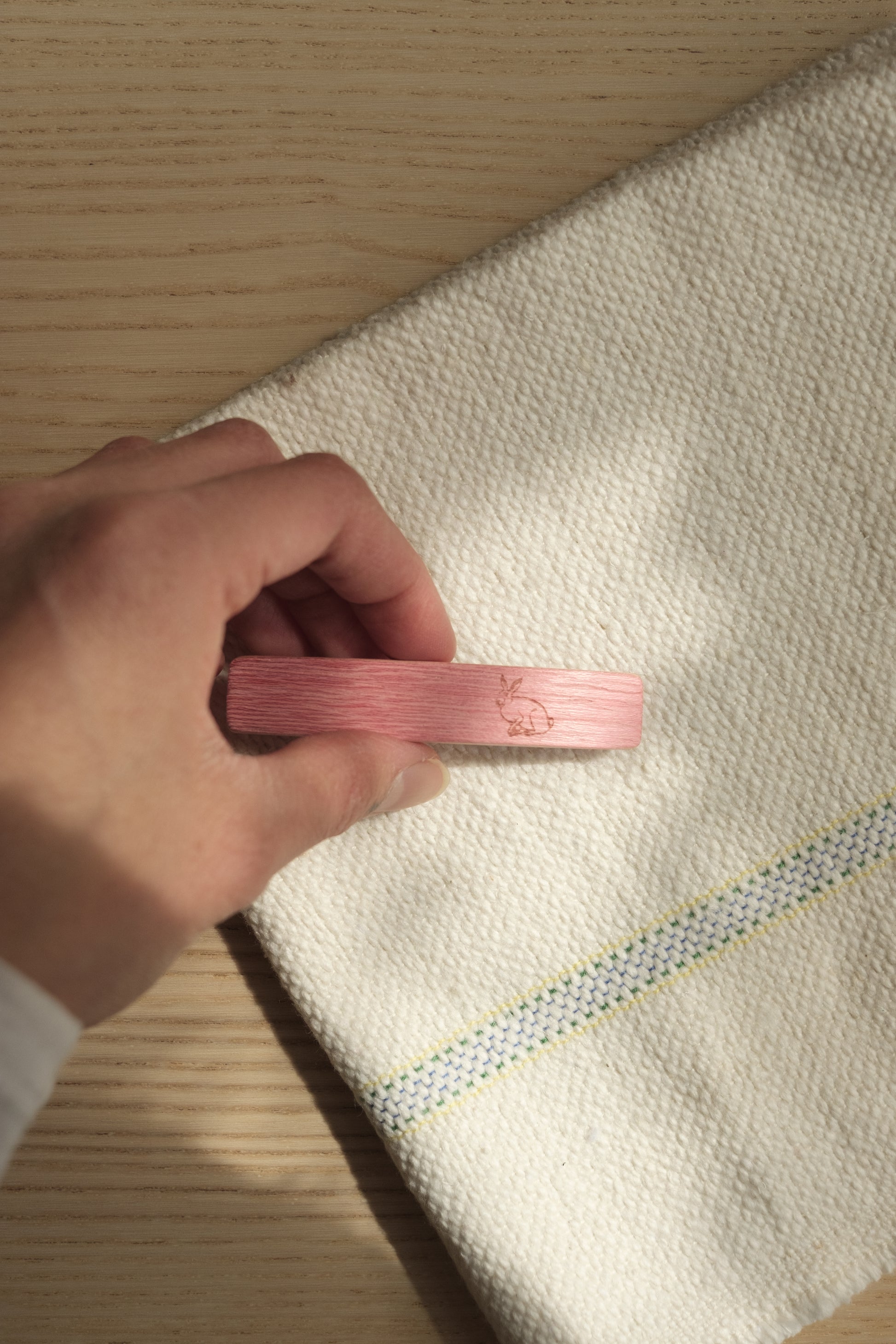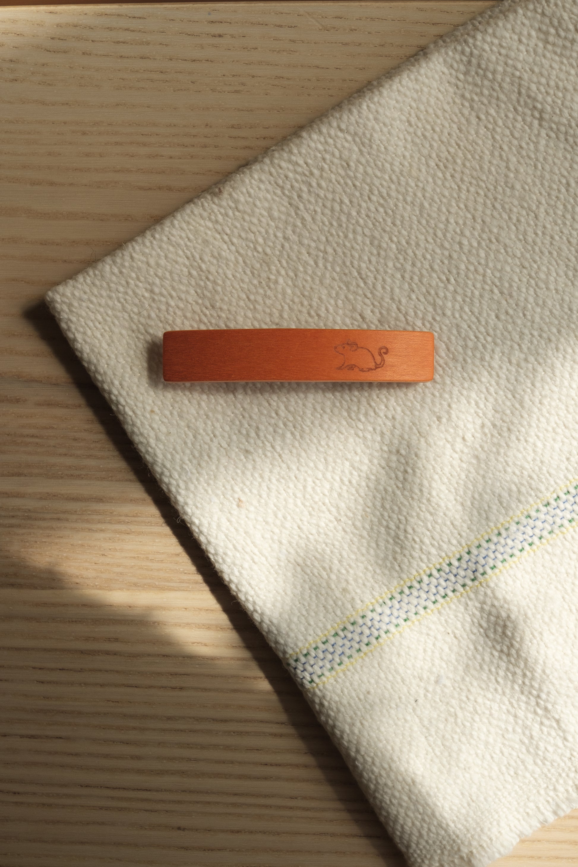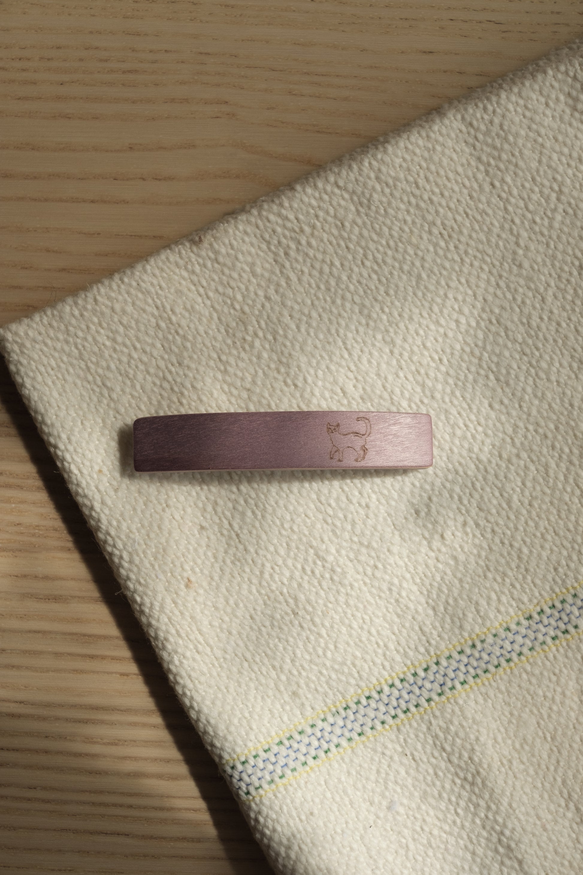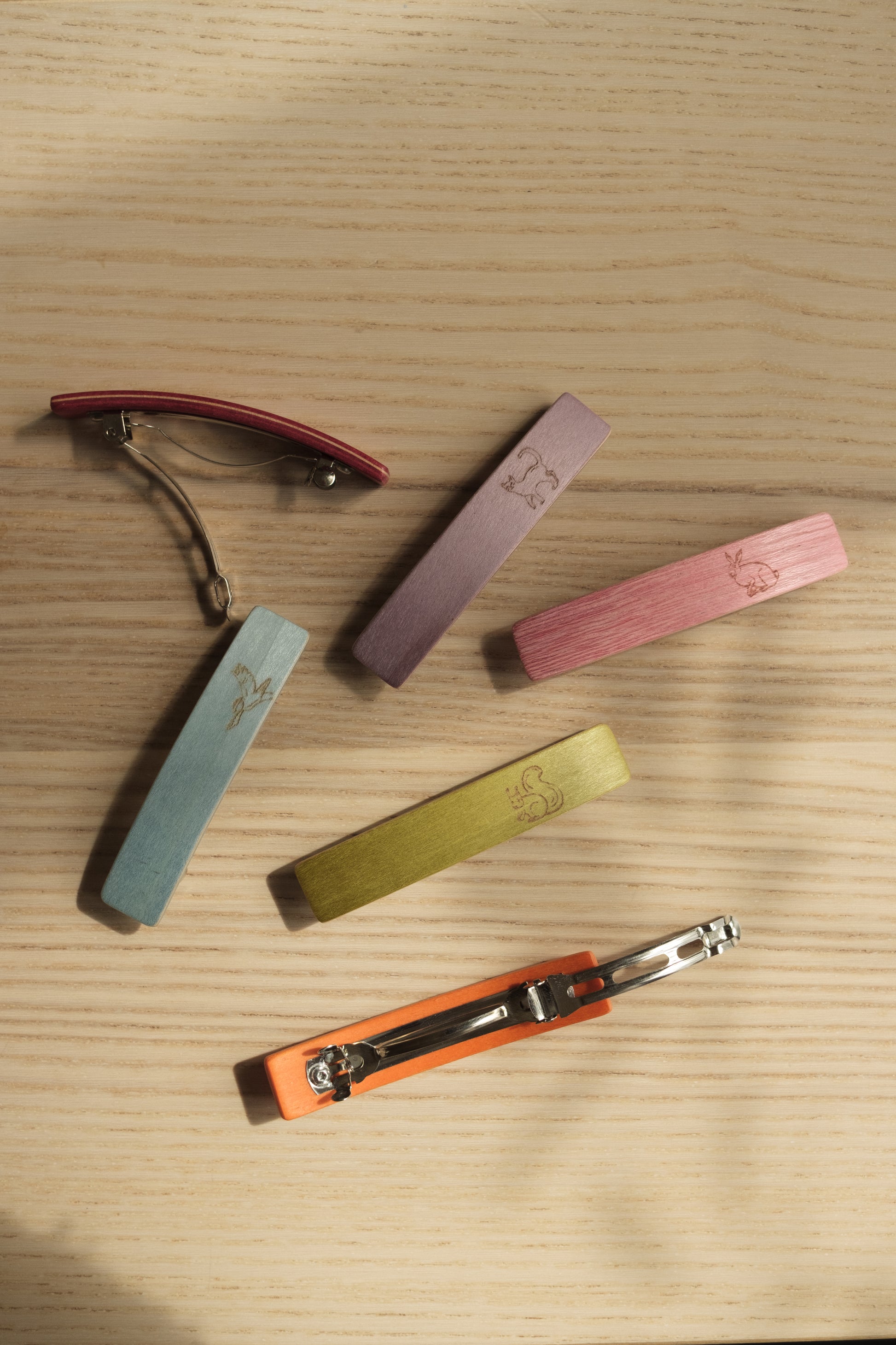 Søt ensfarget hårspenne med dyremotiv, laget av poppelfinér med nikkelfri metallklasp.