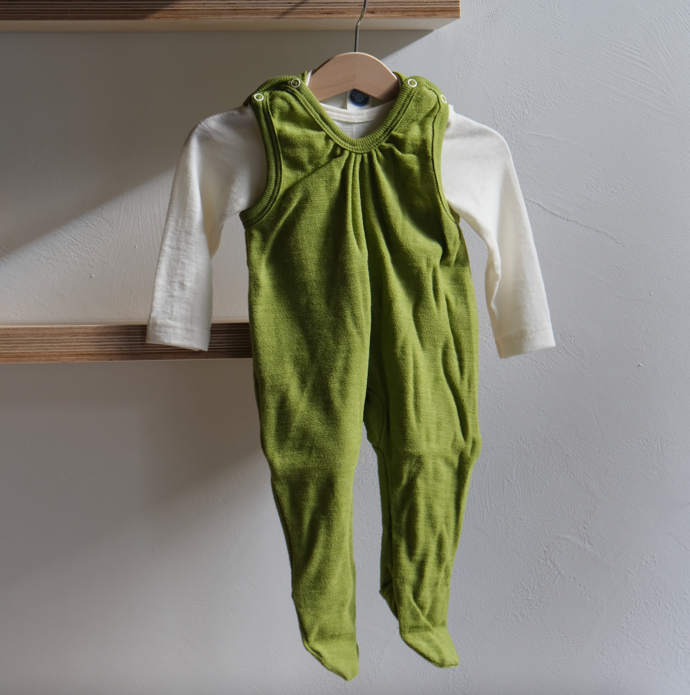 De skjønne, myke sparkebuksene eller hentedrakt i 100% merinoull fra Cosilana hjelper babyen å regulere temperaturen. Den er i en utrolig deilig og myk ullfrotte som er behagelig for baby.