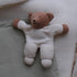 Håndlaget frottè bjørn i økologisk ull og bomull med en liten bjelle i. Bamsen er koselig fra første stund. Håndvaskes i vasken med ullsåpe