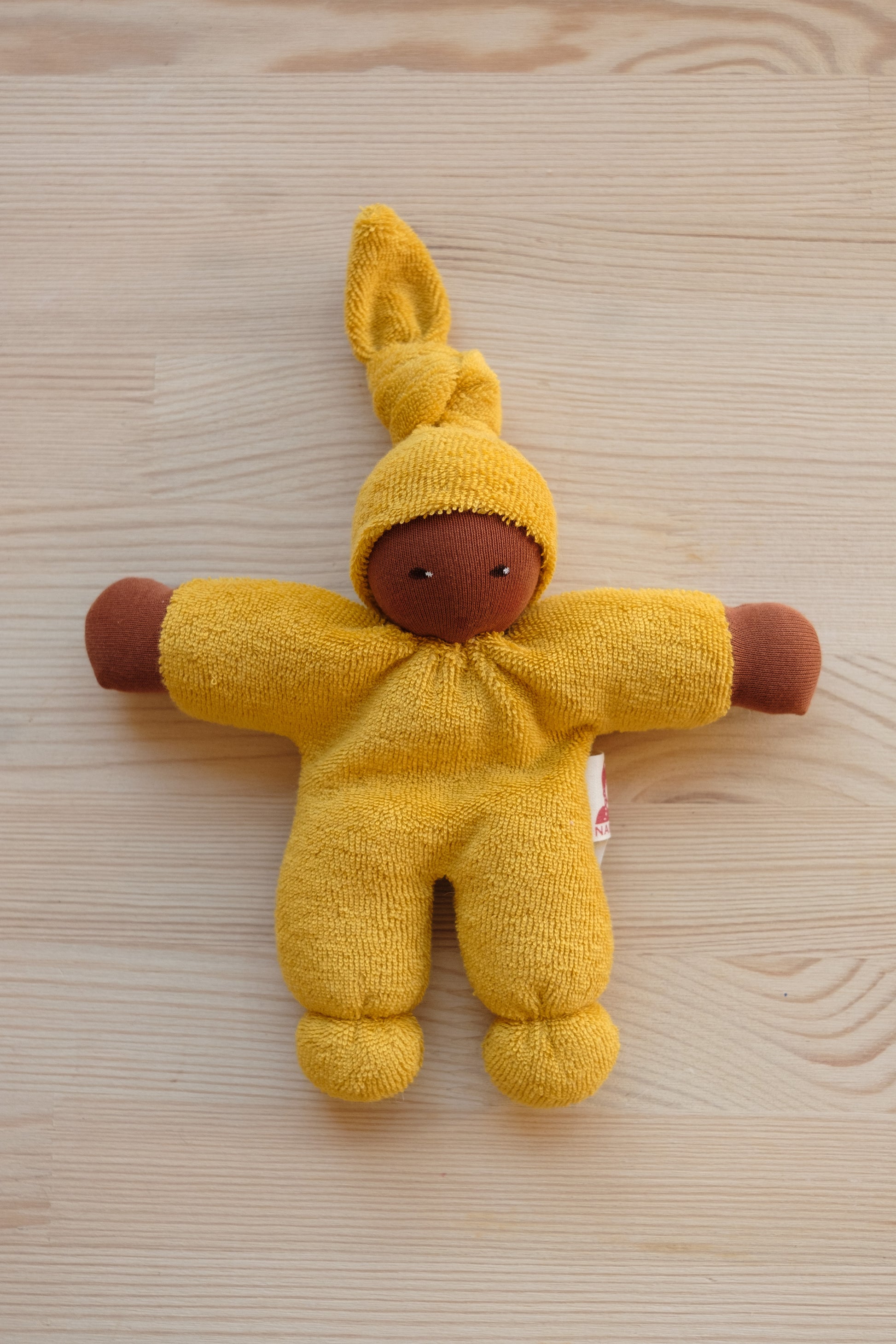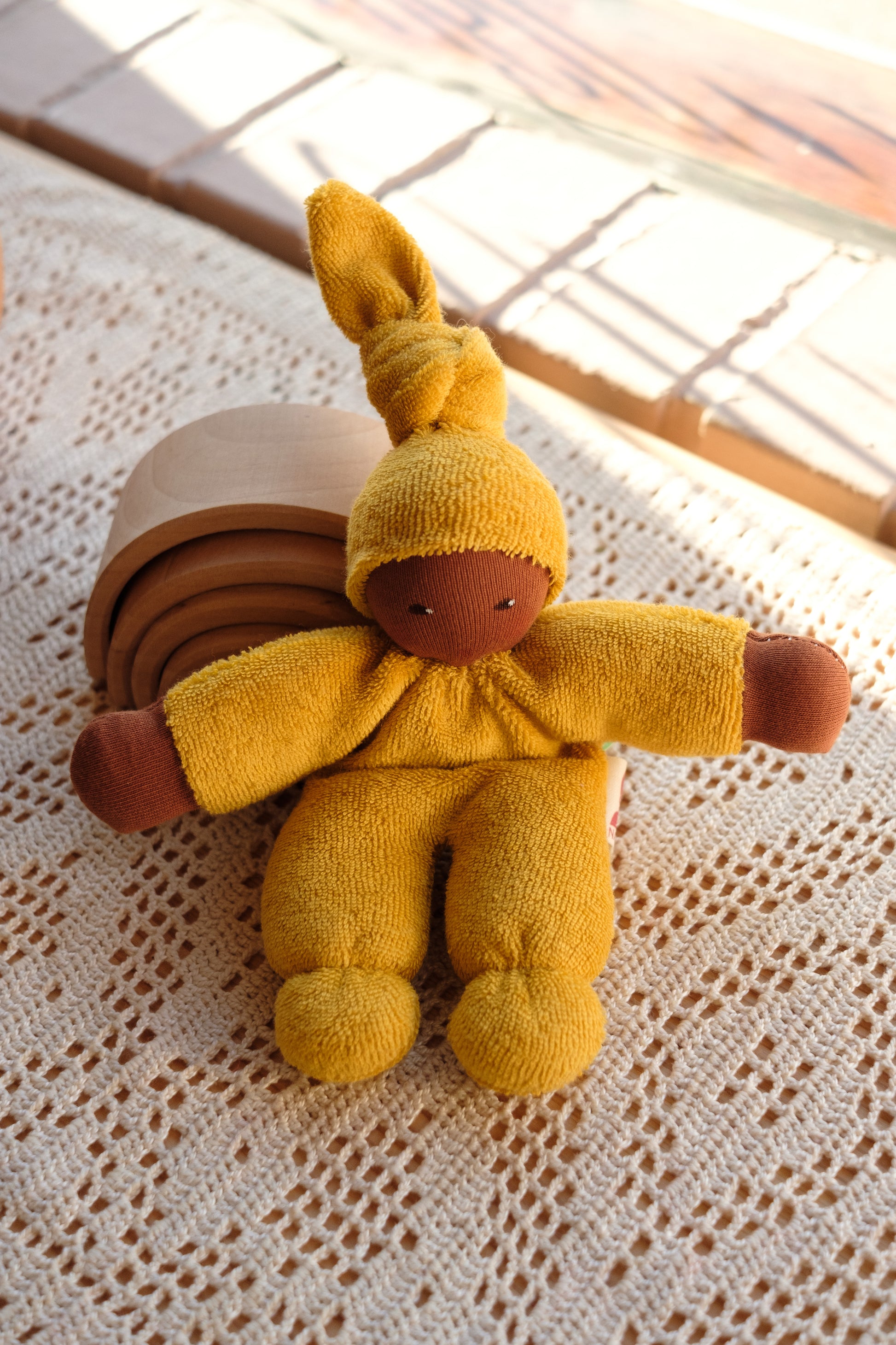 Håndlaget frottèvenn i økologisk ull og bomull.
