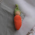 Håndlaget gulrot i økologisk ull og bomullsfrotté med en liten bjelle i.